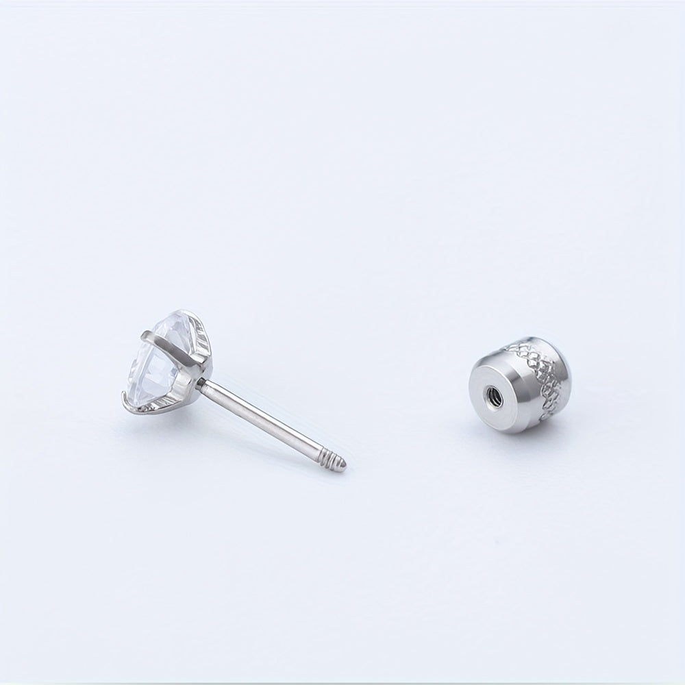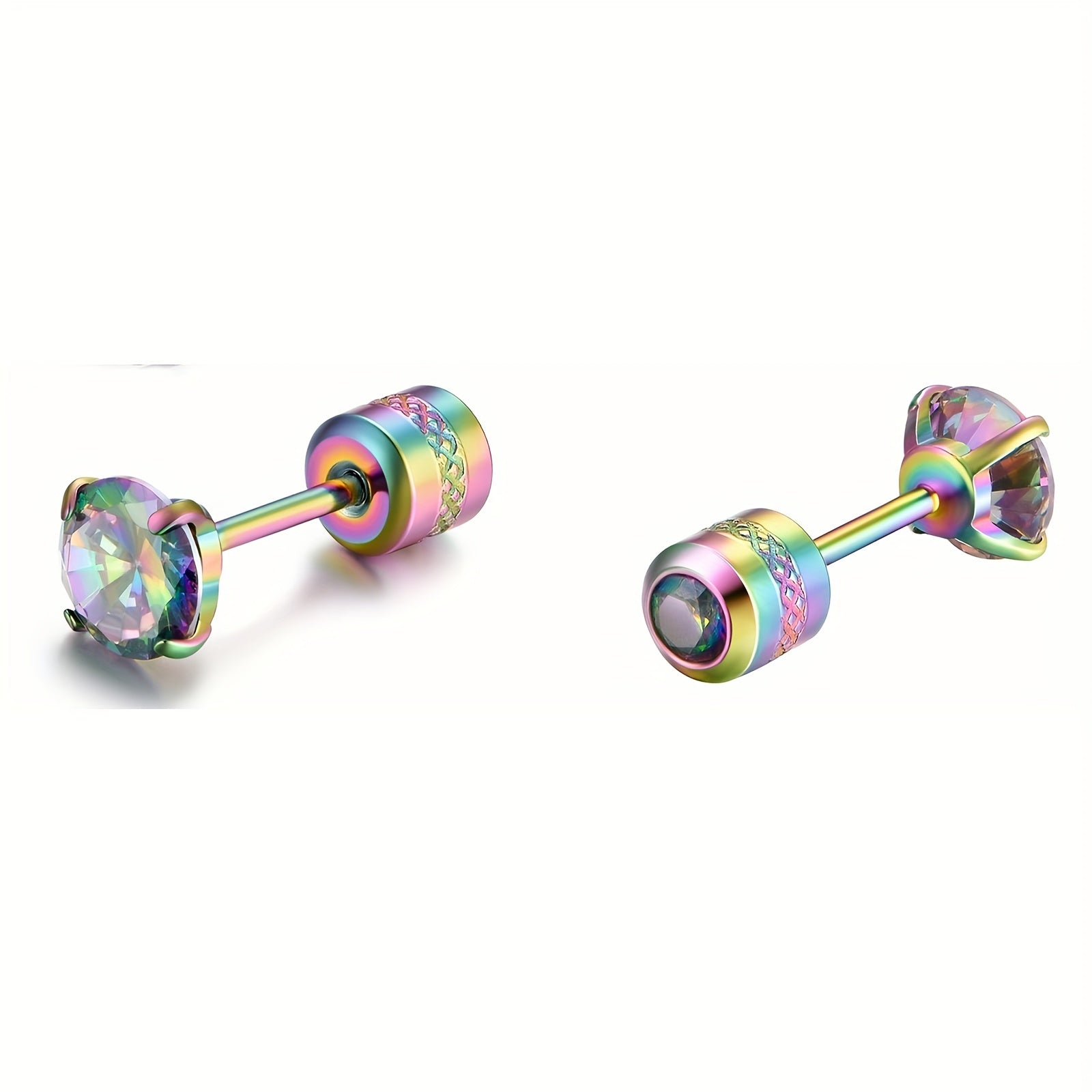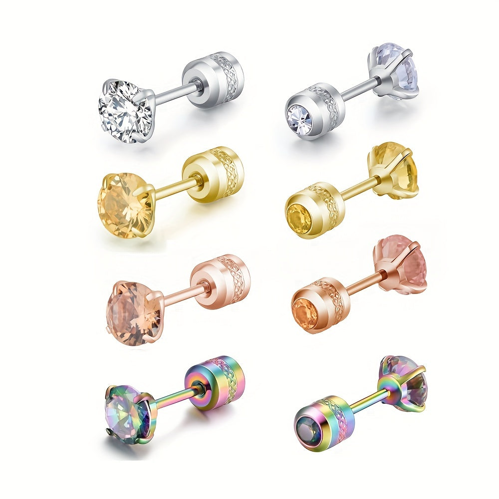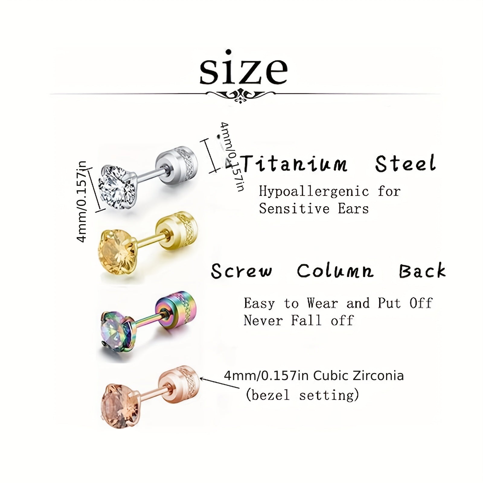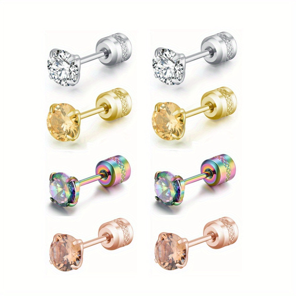 Enhance your style with these 4 pairs of cubic zirconia stud earrings. They feature a unique double side barbell design that adds a touch of sophistication to your look.