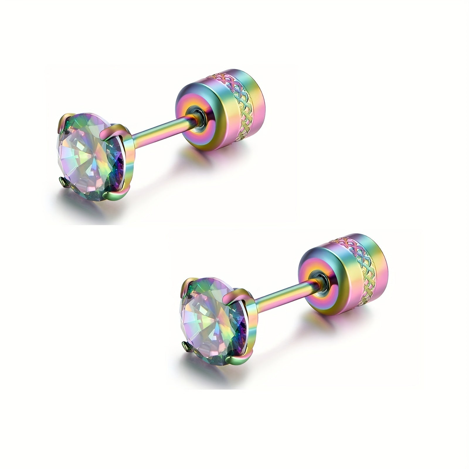 Men's CZ Stud Earrings Double Side Barbell Piercing Jewelry