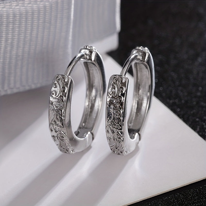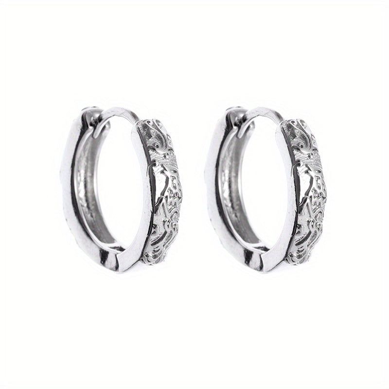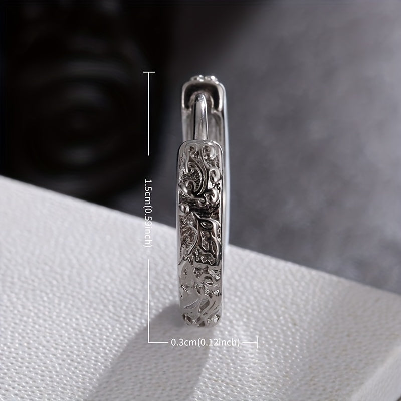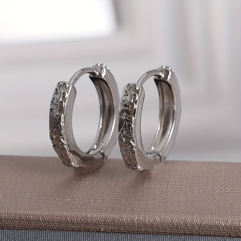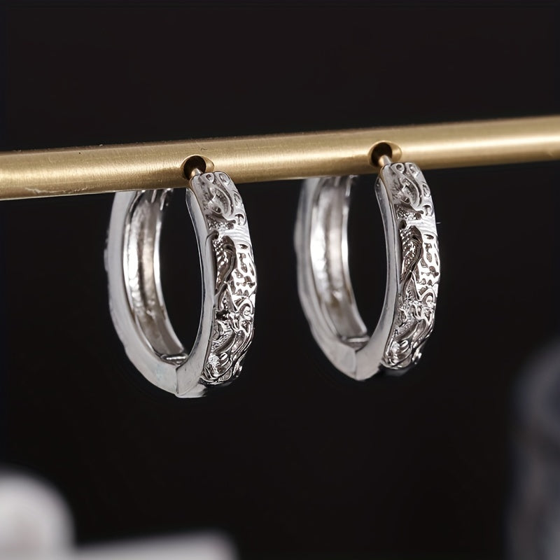 Men's Phoenix Pattern Hoop Earrings, 2pcs Pair