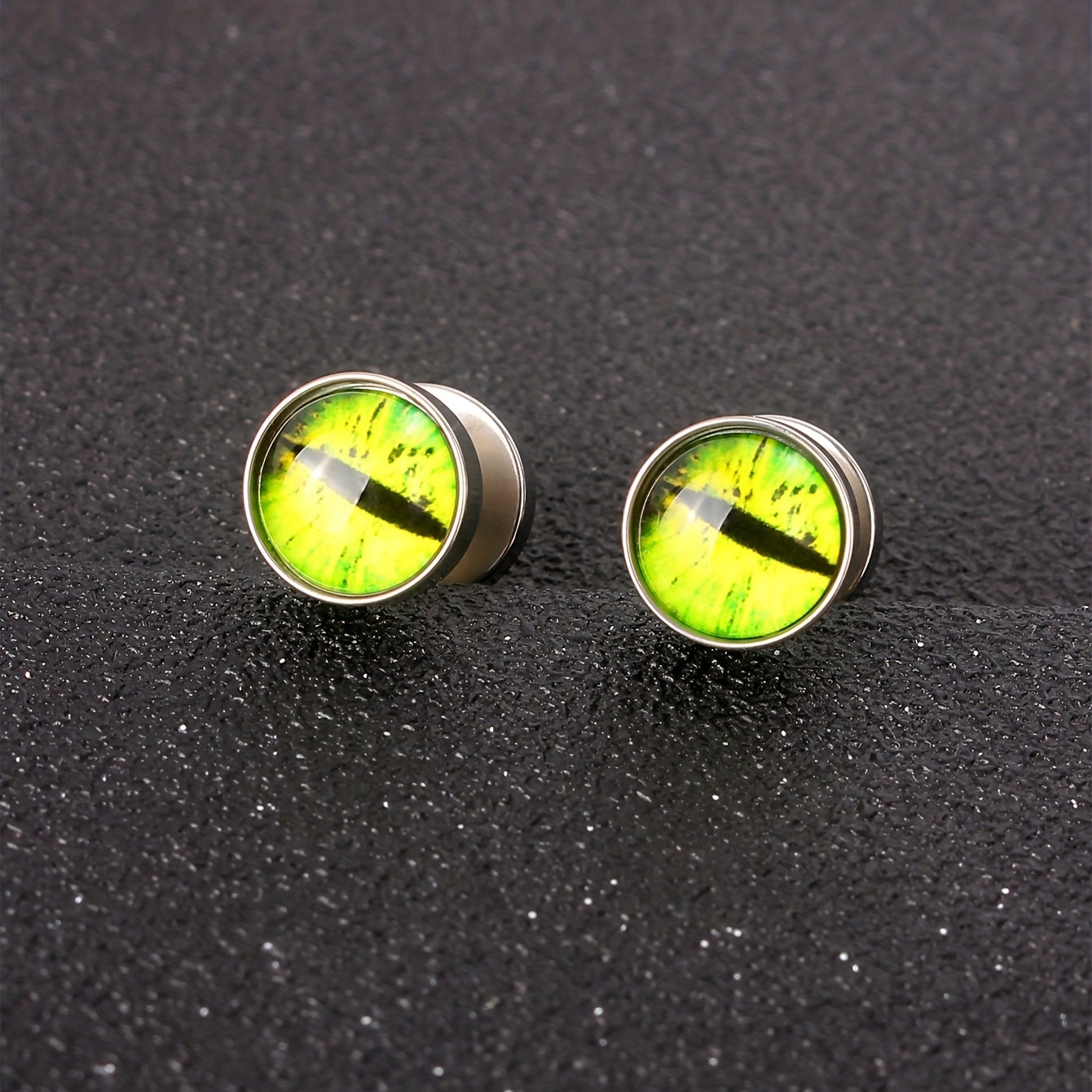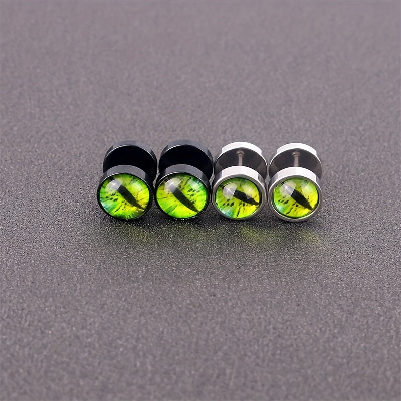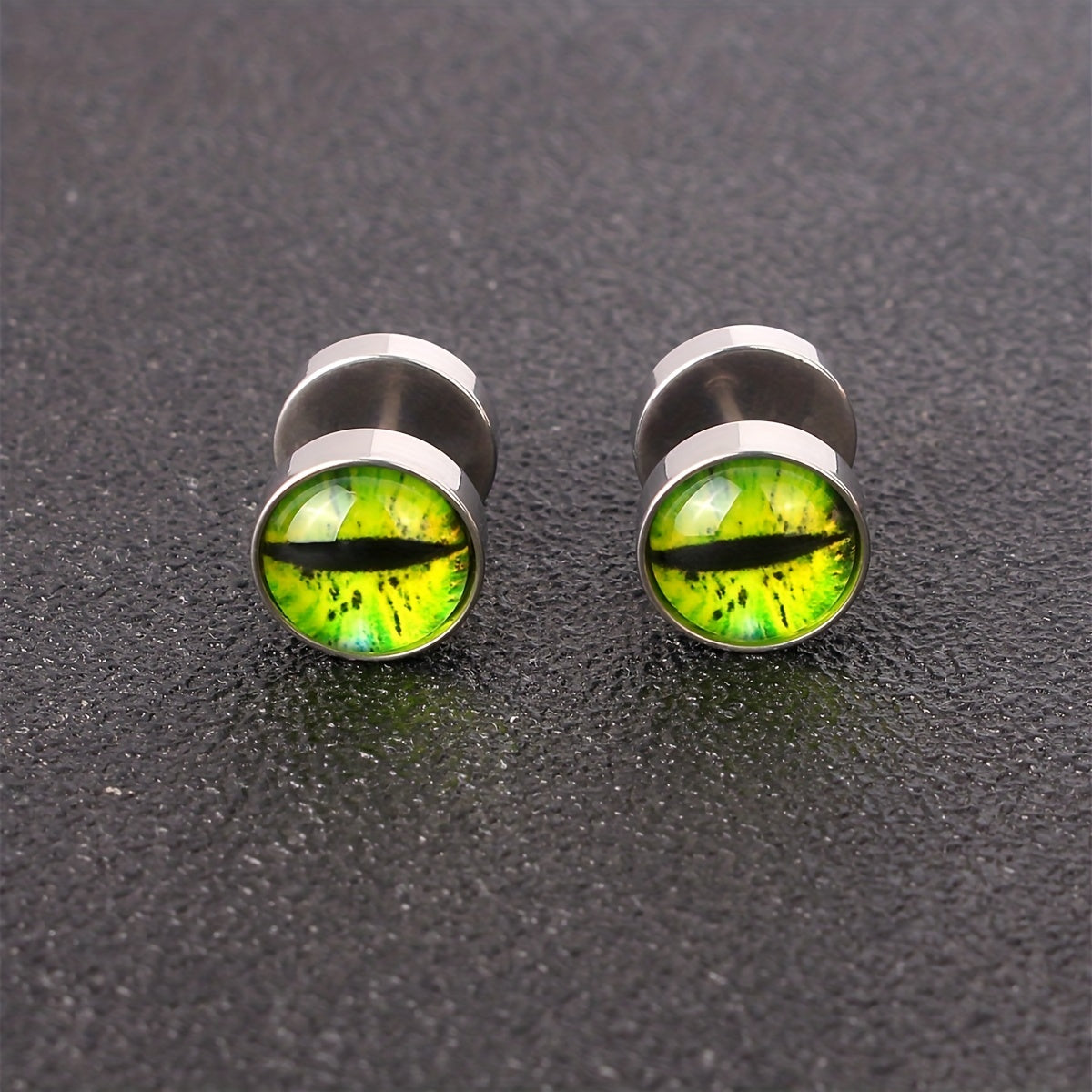 Make a bold statement with these stainless steel stud earrings featuring a unique dumbbell frog eye design.