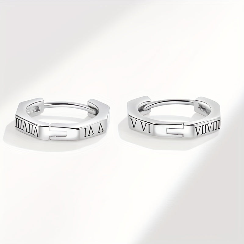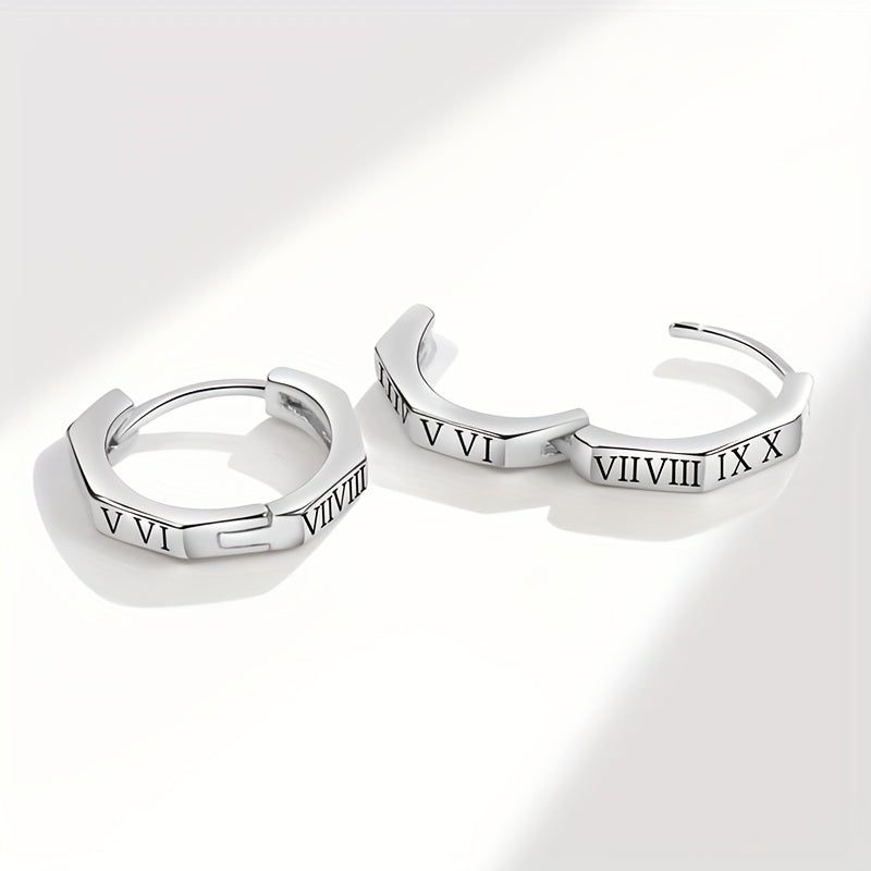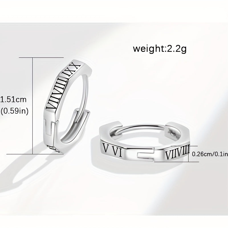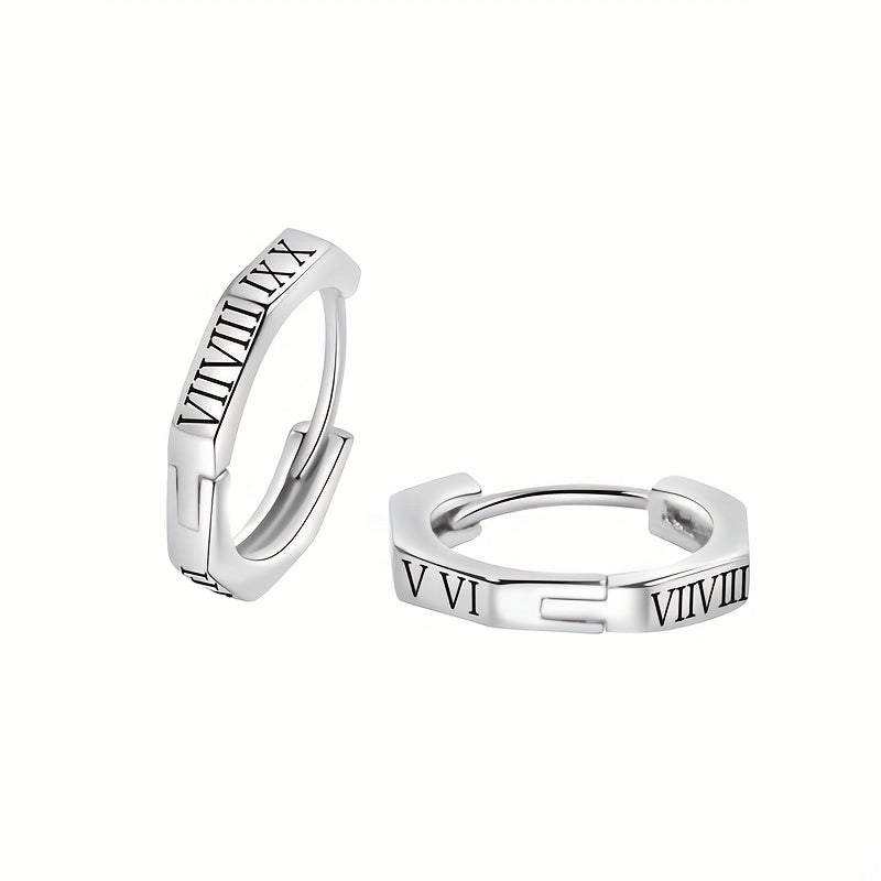Enhance your style with these sophisticated Roman numeral earrings. These circle ear buckles add a touch of elegance to your look.