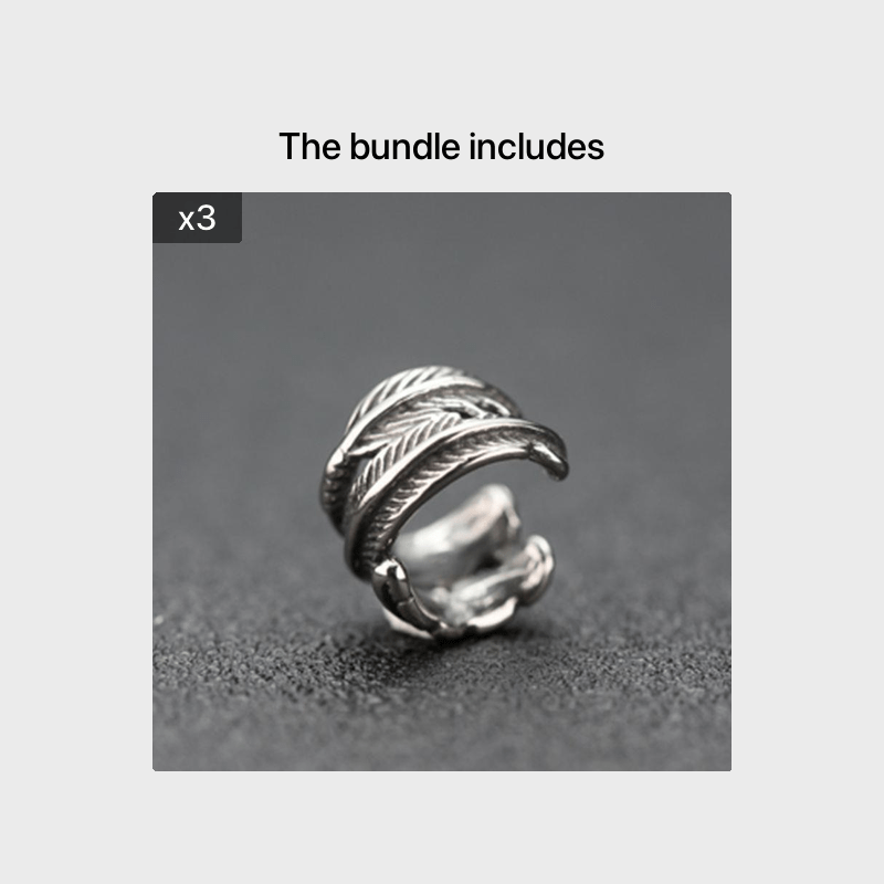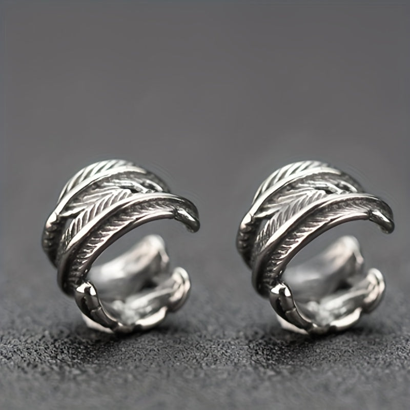 Men's Silver Ear Cuff Feather Design No Piercing
