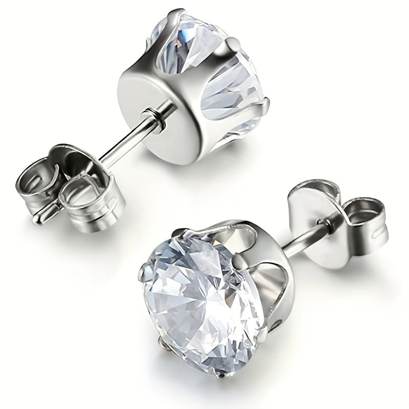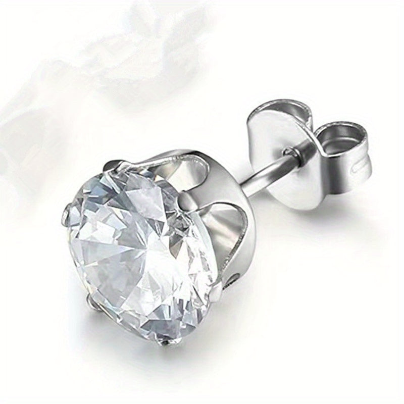 Men's Stainless Steel Zircon Stud Earrings Piercing Ear Jewelry