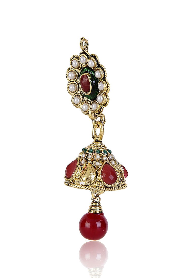 Elegant and traditional metal jhumki earrings in gold color.