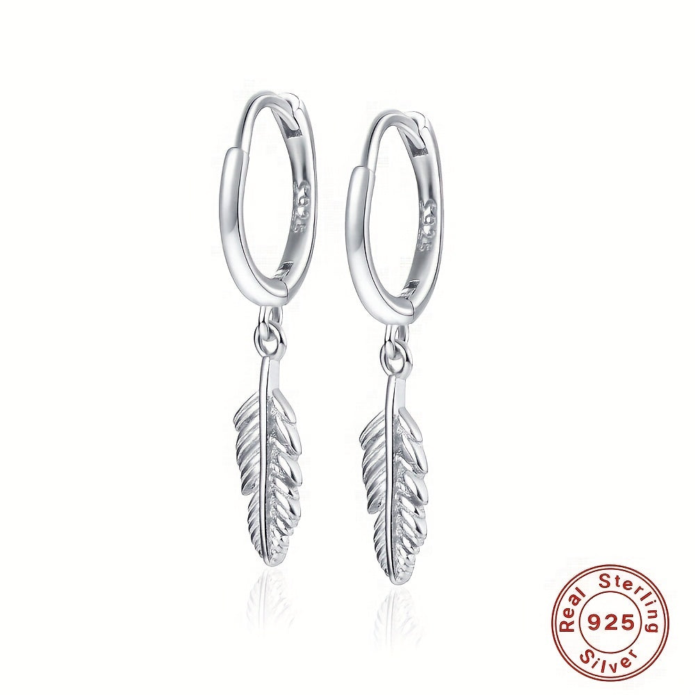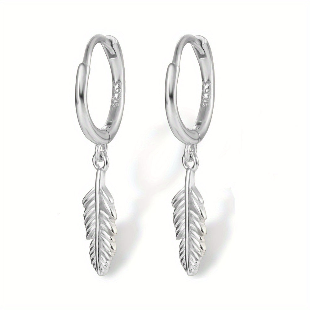 Minimalist Feather Dangle Earrings Sterling Silver 925
