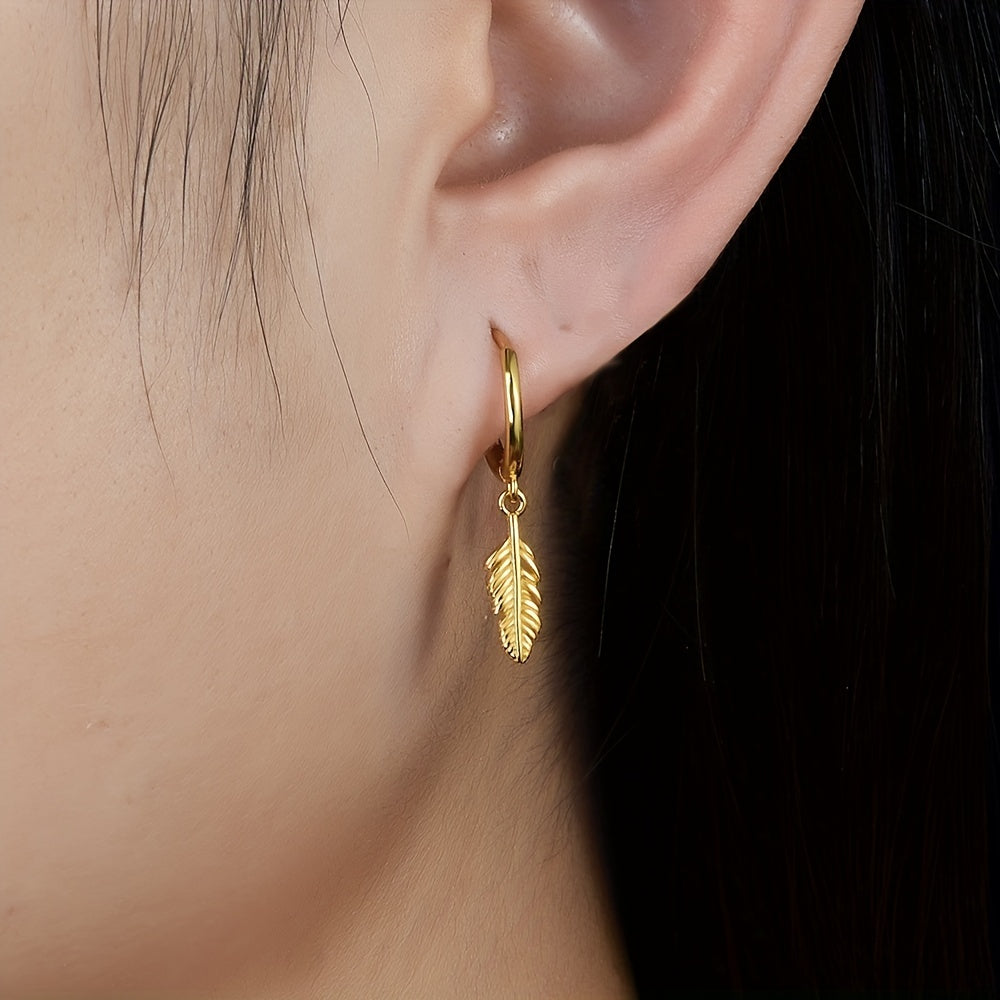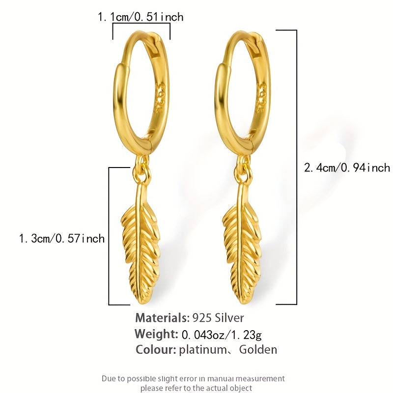 Add a touch of elegance to your daily look with these golden silvery feather pendant earrings made of high-quality sterling silver.