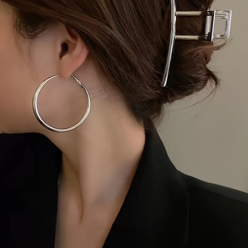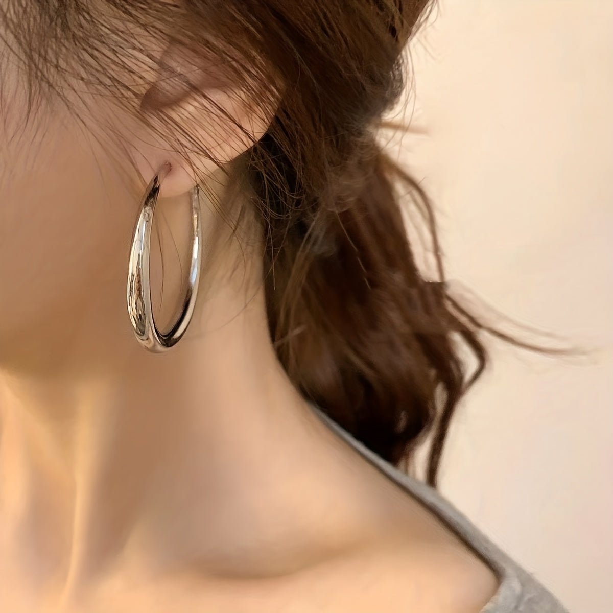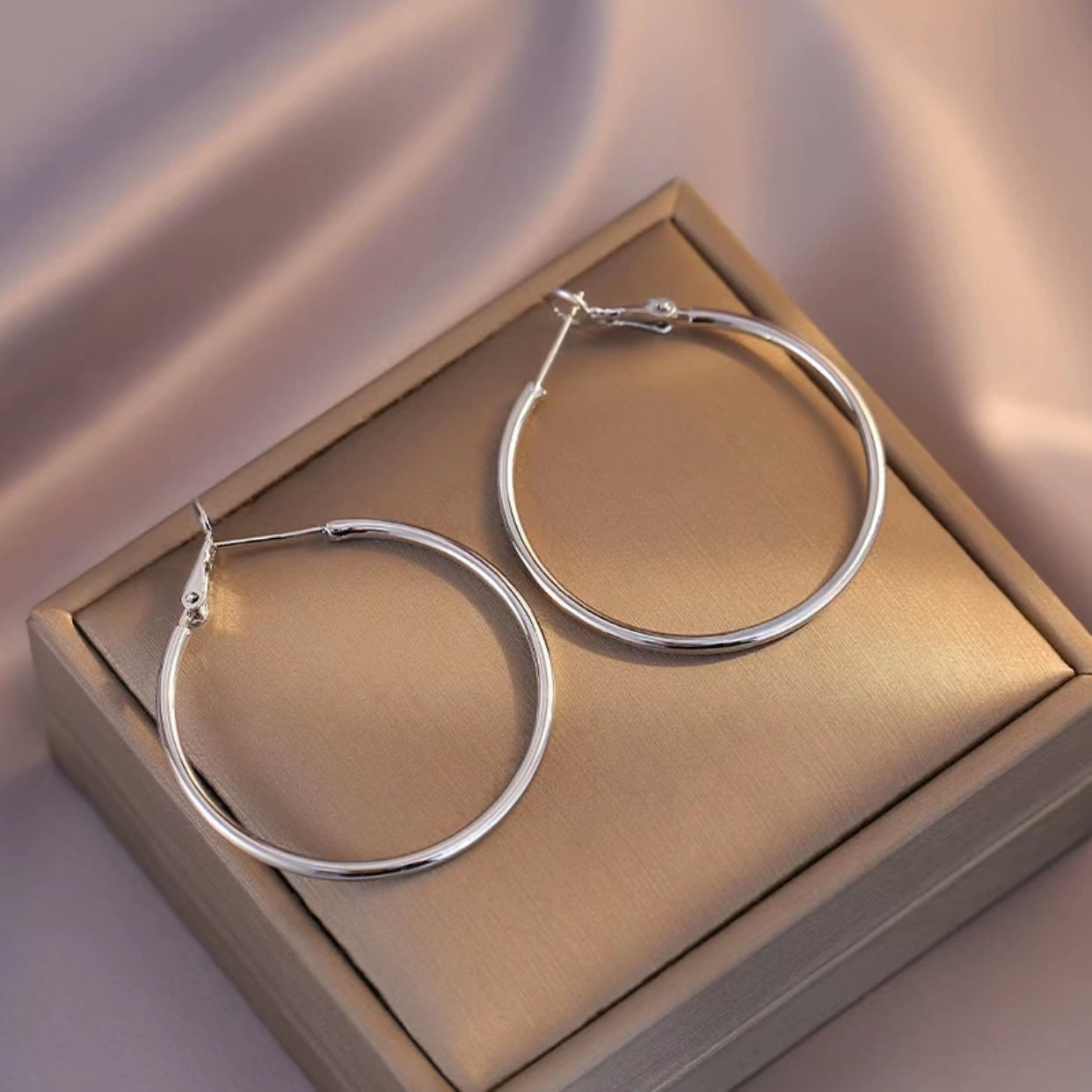 These elegant hoop earrings feature a silvery design and silver needle, perfect for a minimalist style. They make a great gift for special occasions or everyday wear.