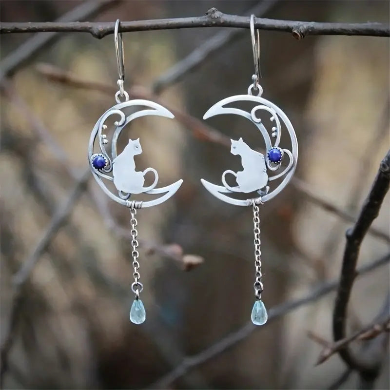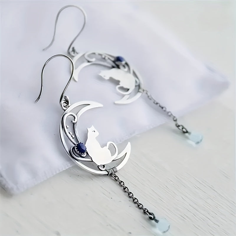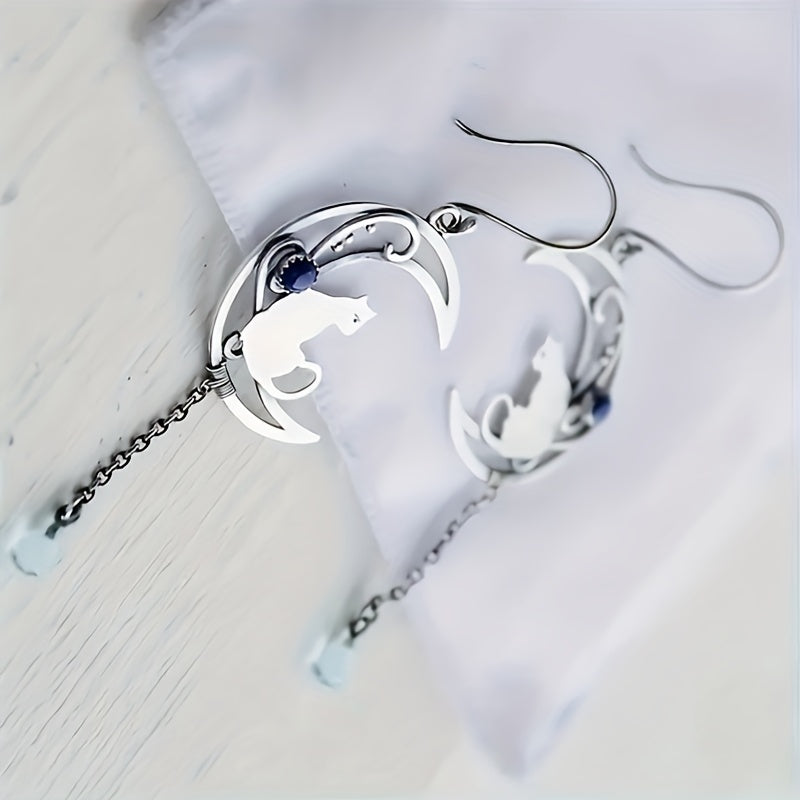 Enhance your style with these Moon Kitten drop earrings, perfect for daily wear. Made of high-quality materials, these earrings are a stylish addition to any outfit.