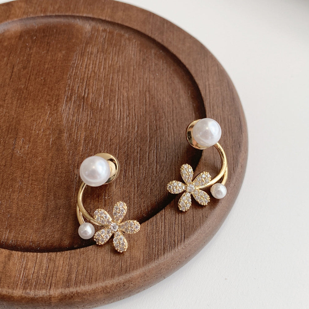 These delicate pearl flower earrings are perfect for adding a touch of elegance to any outfit. Featuring a small design, they are great for daily wear or special occasions.