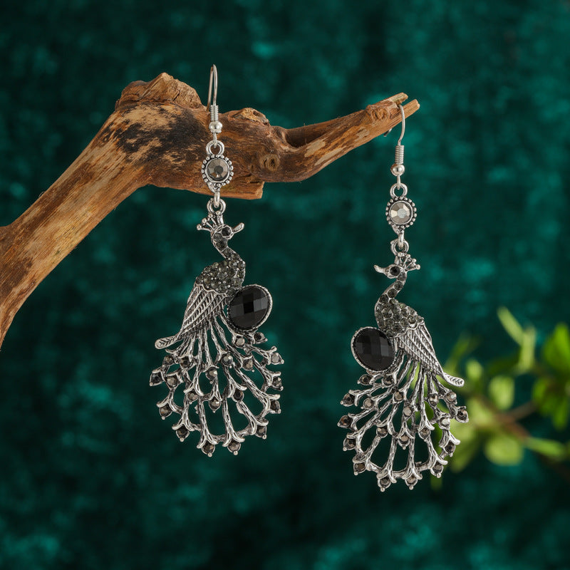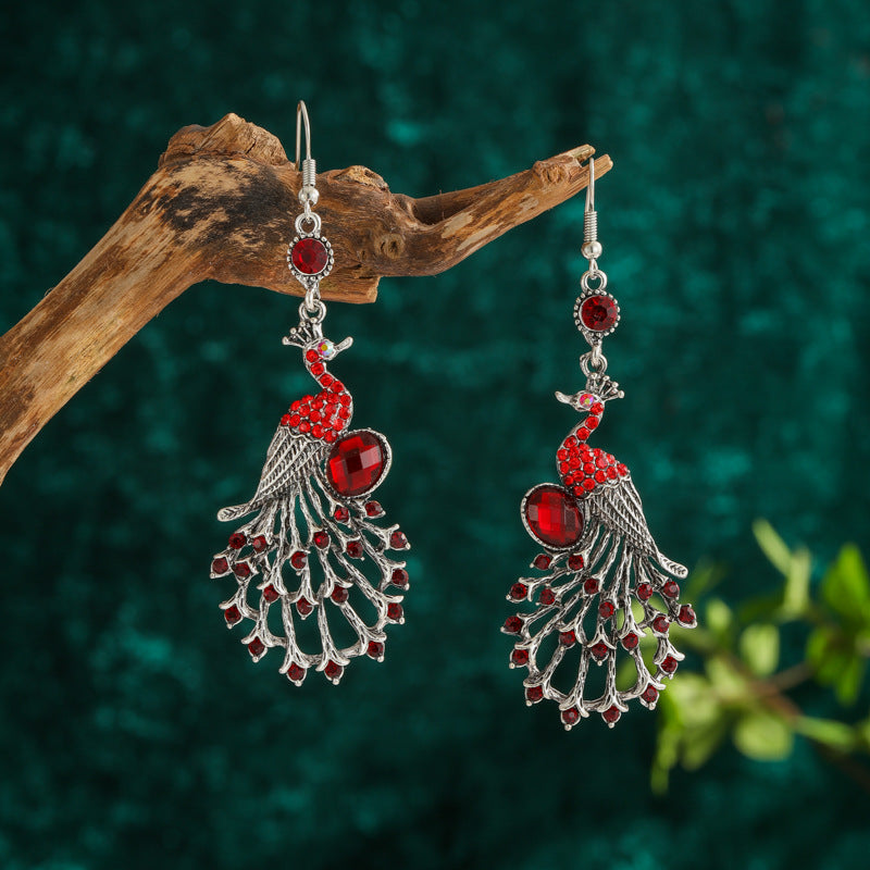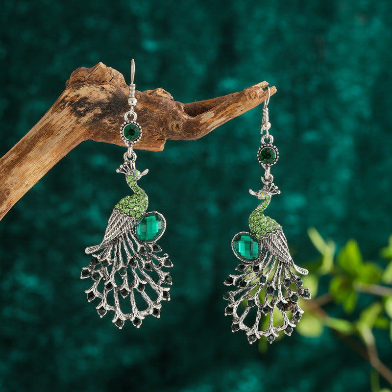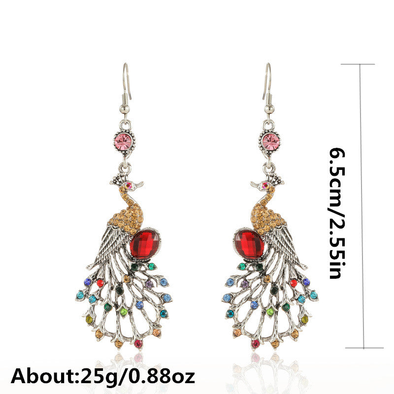 These stunning peacock drop earrings are inlaid with faux gemstones, perfect for adding a touch of elegance to your look. Ideal for proms, parties, banquets, or any special occasion.