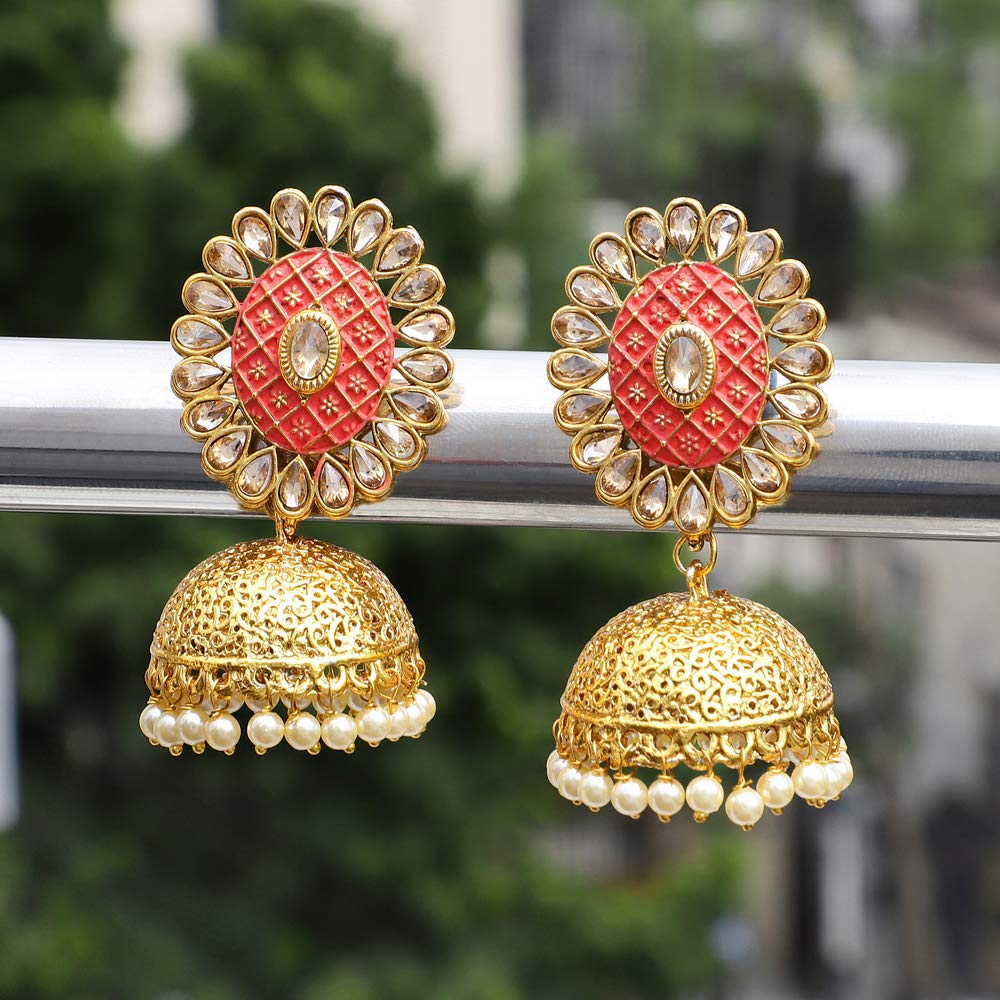 Elegant and stylish pearl plated jhumki earrings that add a touch of sophistication to your look.