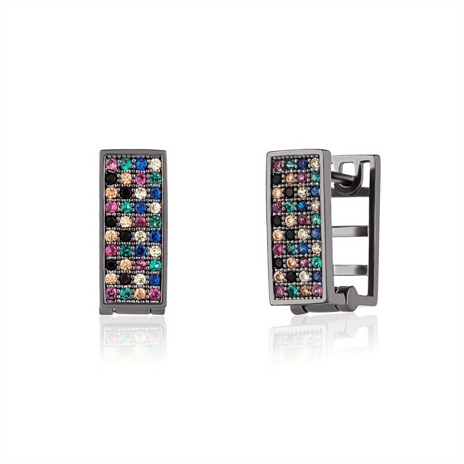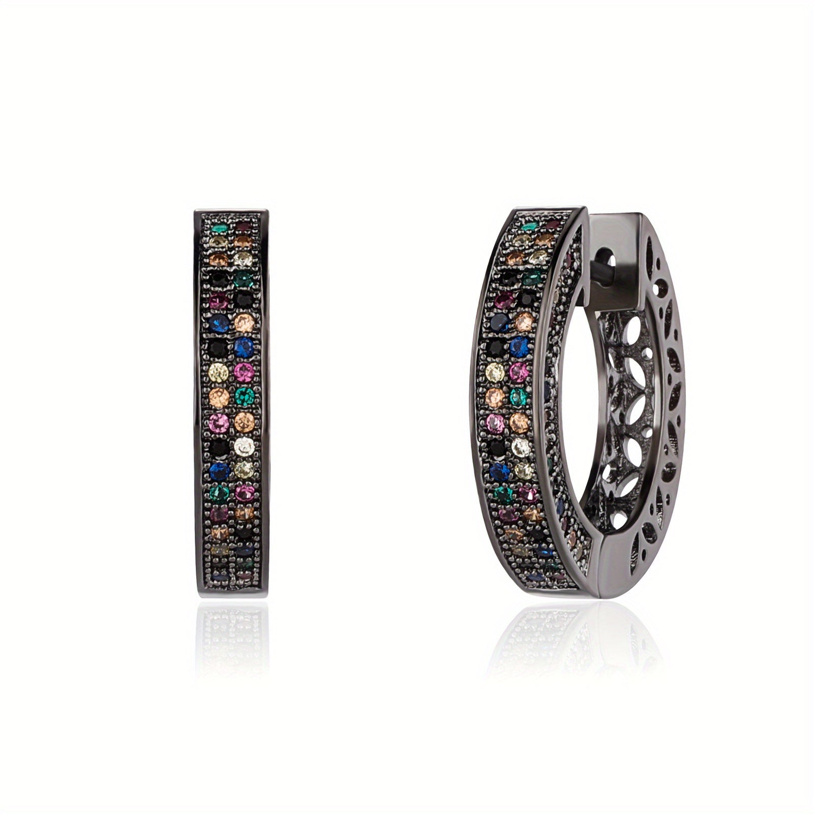 Rainbow CZ Hollow Out Hoop Earrings for Men Colorful Hip Hop Round Gift