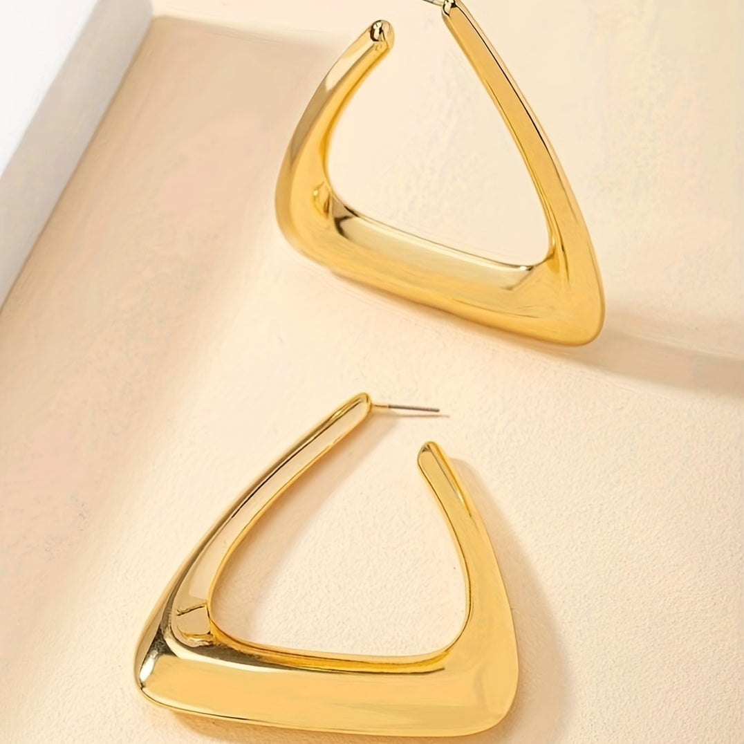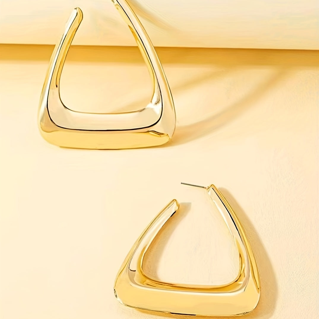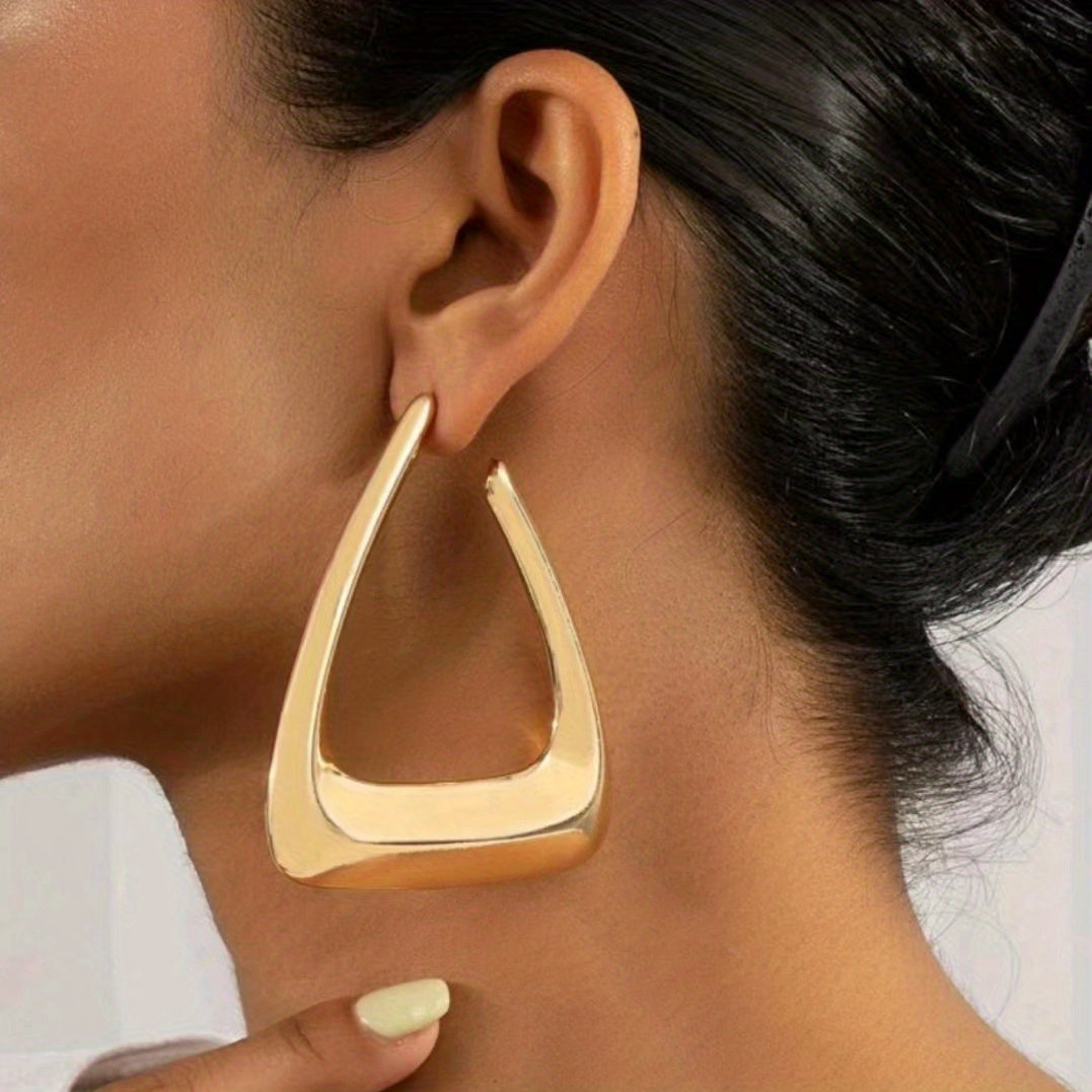 Rectangle Shape Golden Hoop Earrings Alloy Jewelry Gift