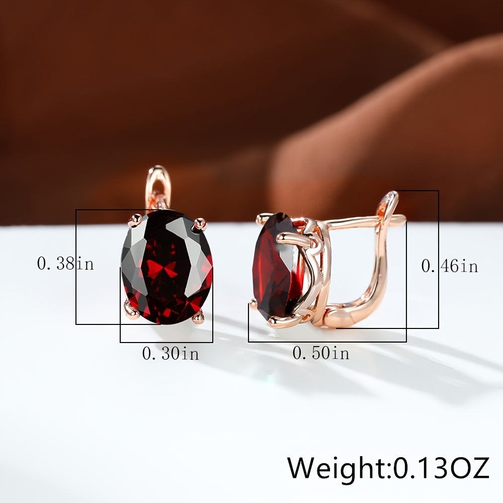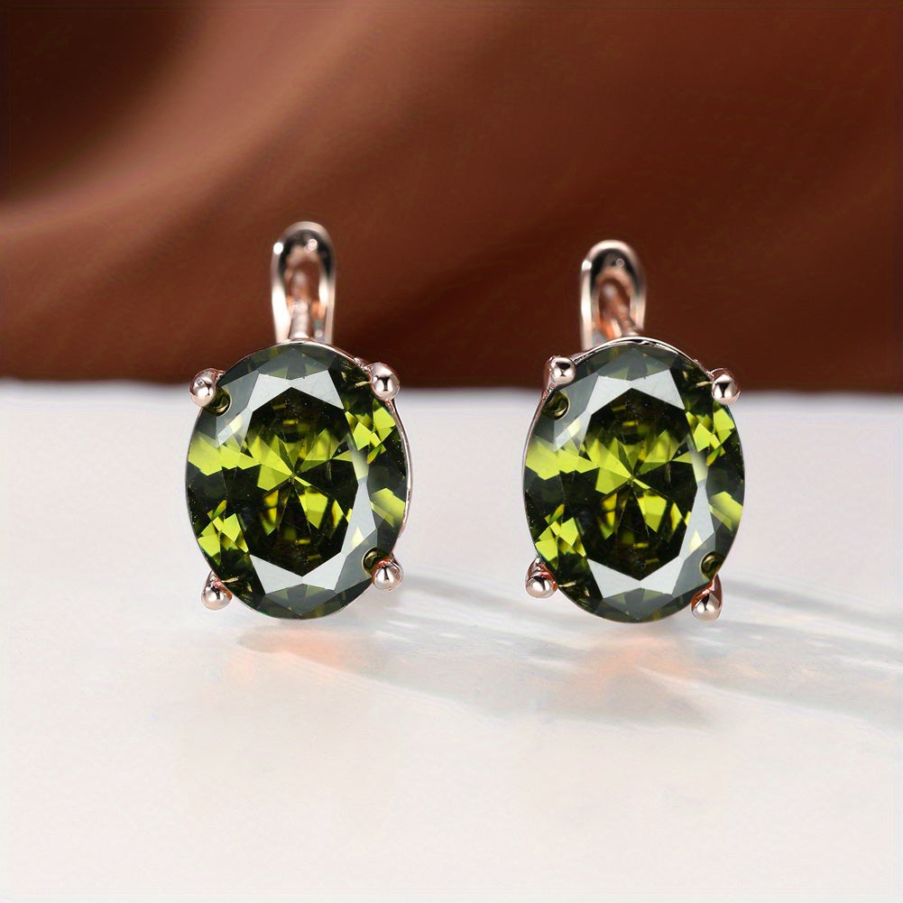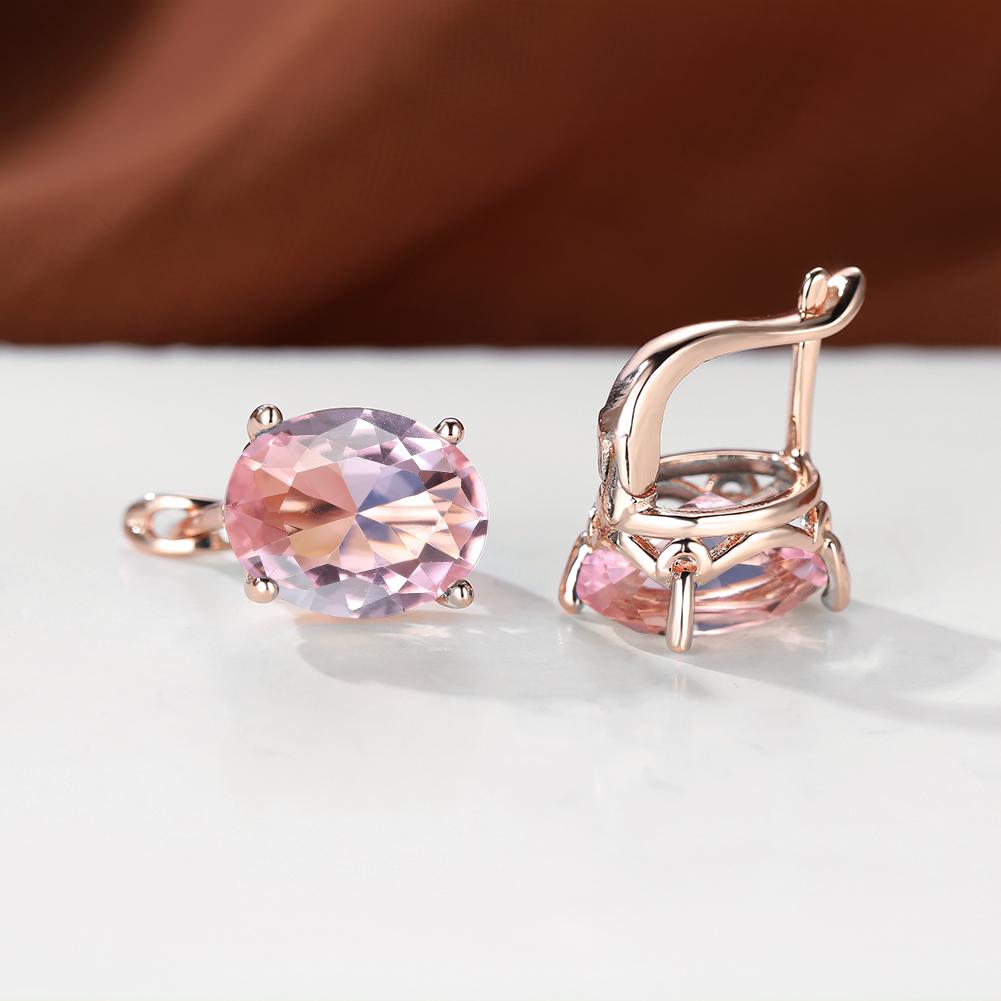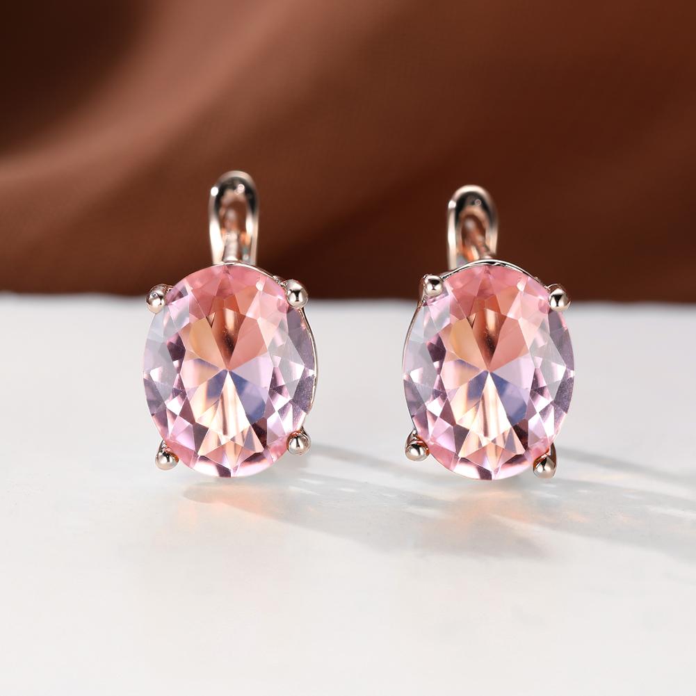 • Rose gold oval shape zircon earrings
