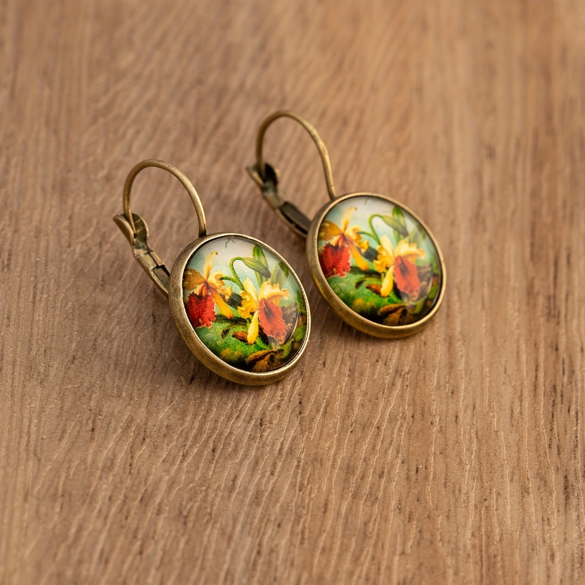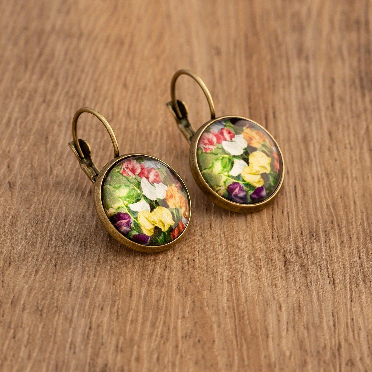 Add a touch of retro charm to your daily wear with these round earrings featuring rose and sunflower prints. Made of copper, these earrings make a perfect gift for any occasion.