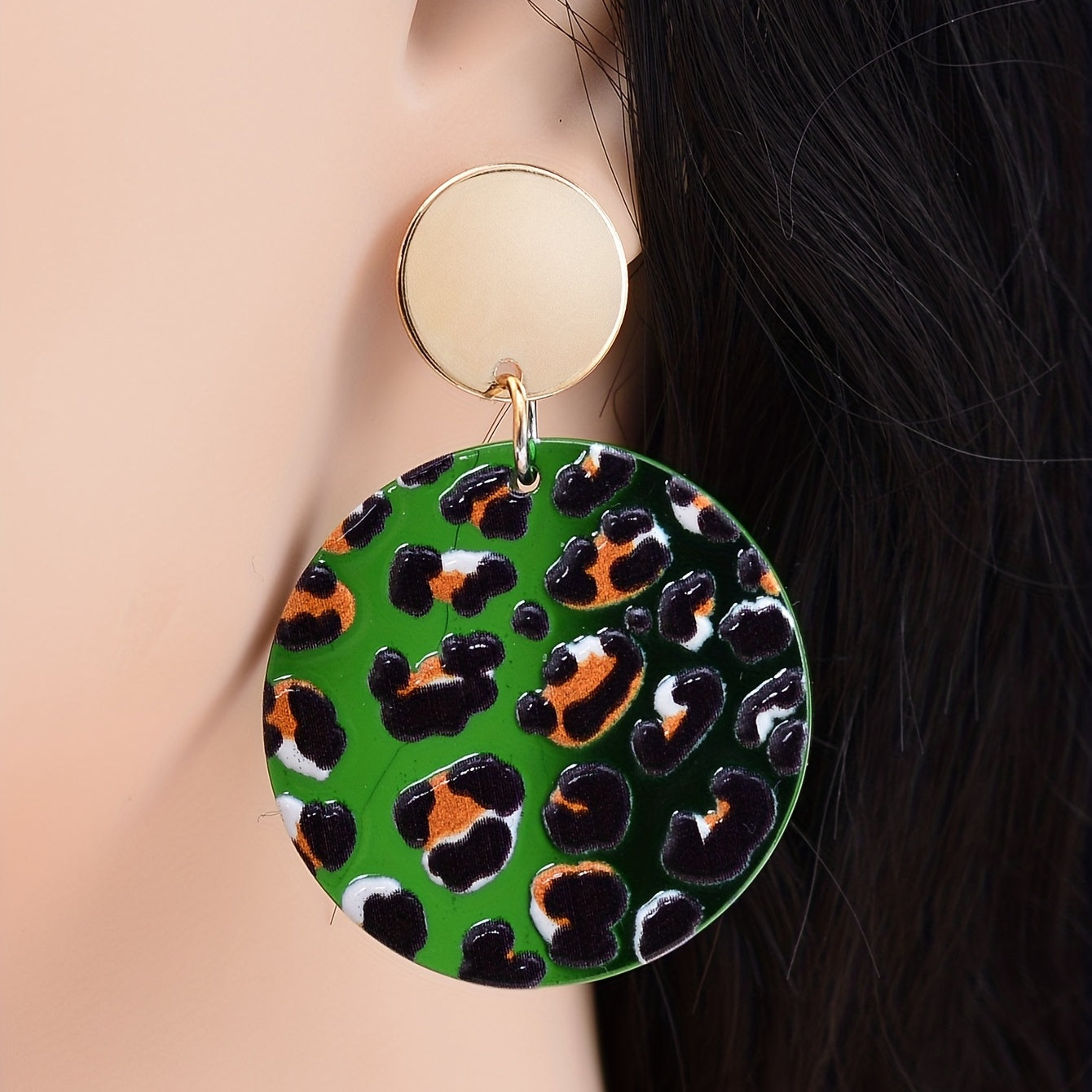 These cute dangle earrings feature a round shape with a dog head pattern, perfect for dog lovers. The bohemian style adds a trendy touch to any outfit. Makes a great gift for someone who adores dogs.
