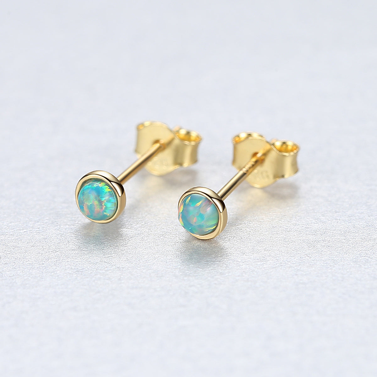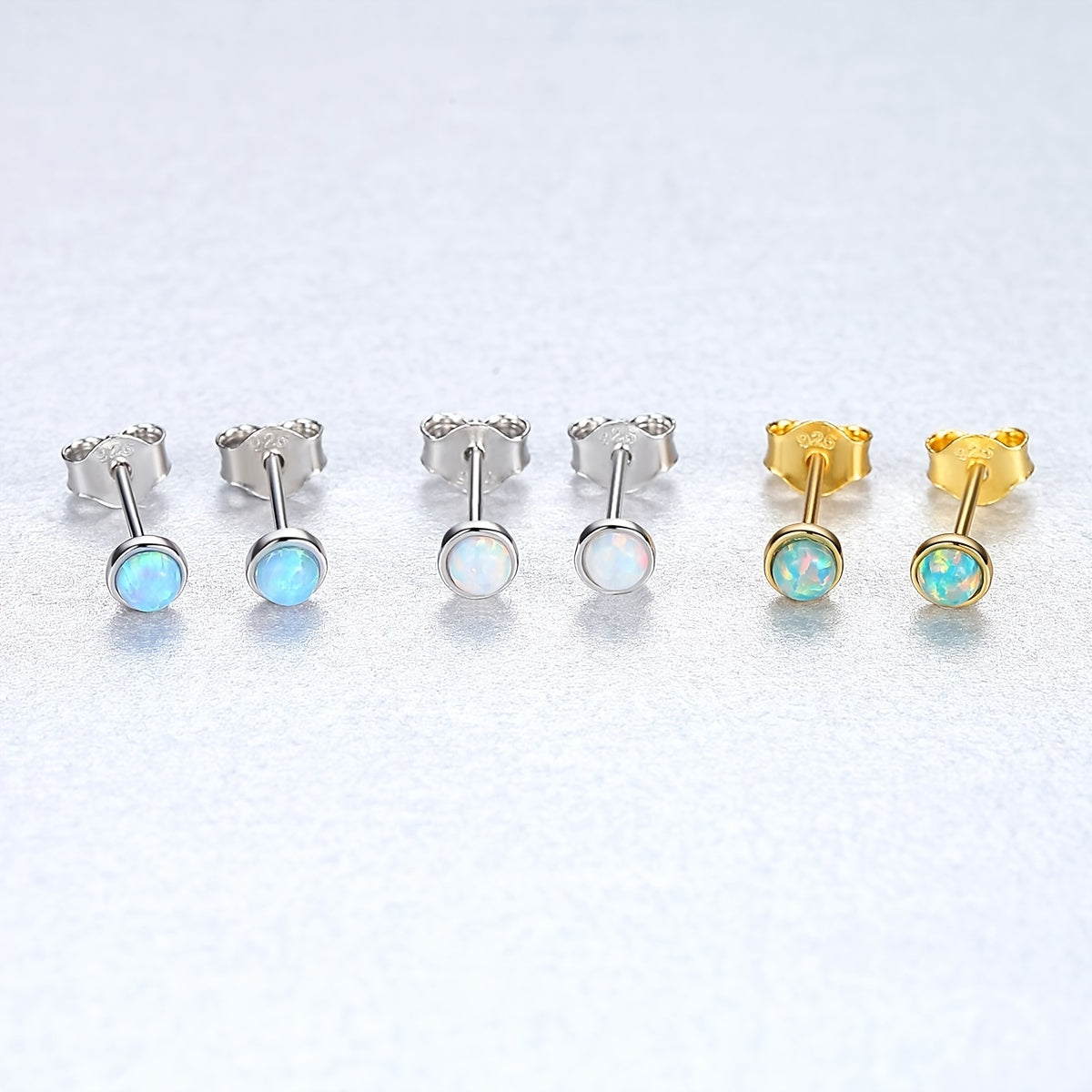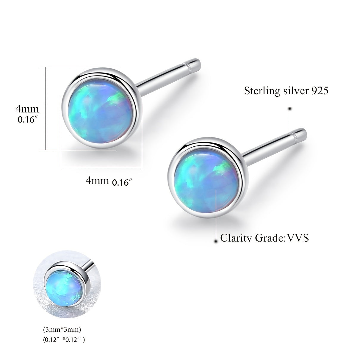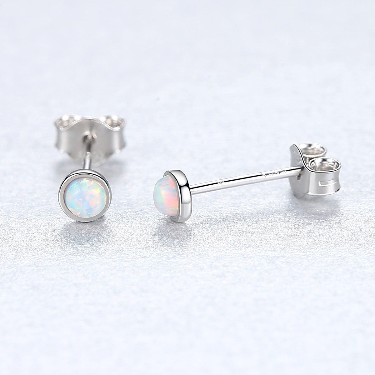 Round Opal Stud Earrings 925 Silver Delicate Jewelry For Women Girls Gift