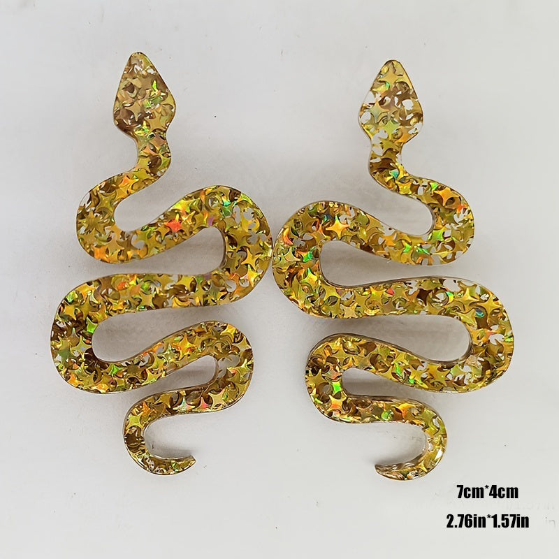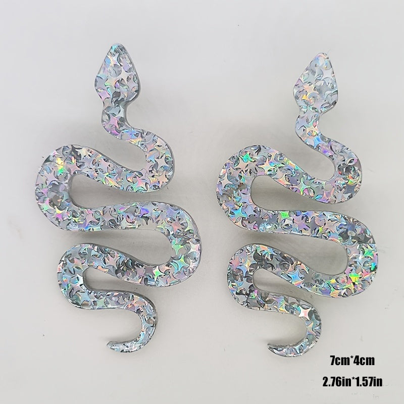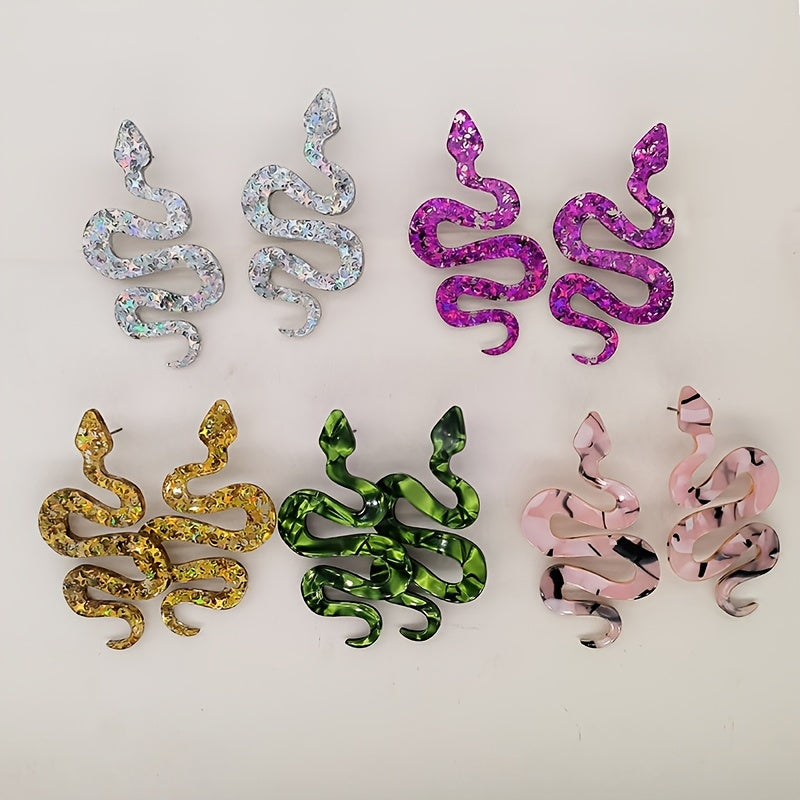 Add a touch of personality to your outfit with these sequined acrylic snake earrings. Perfect for parties and events, these accessories are a fun and unique way to express your style.