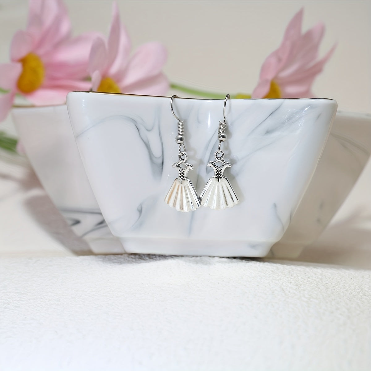 Add a touch of retro elegance to any outfit with these silvery dress dangle earrings. Made of high-quality alloy, these earrings are perfect for a delicate female gift.