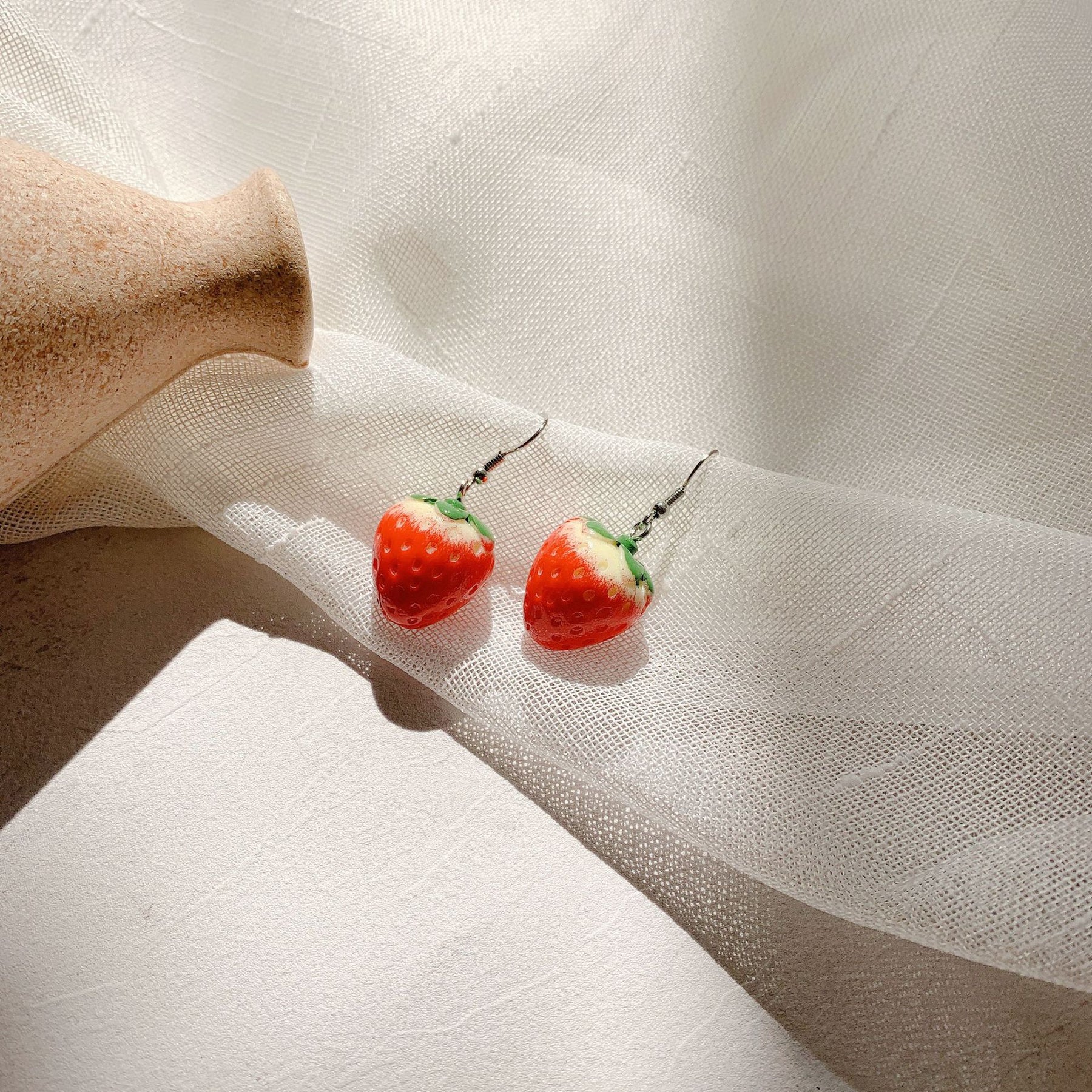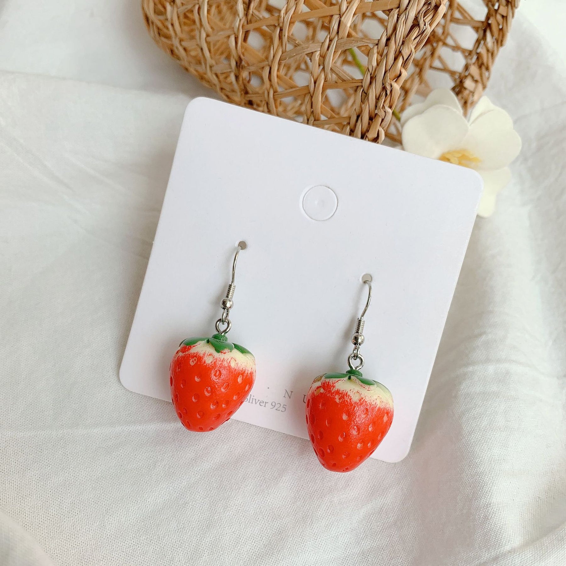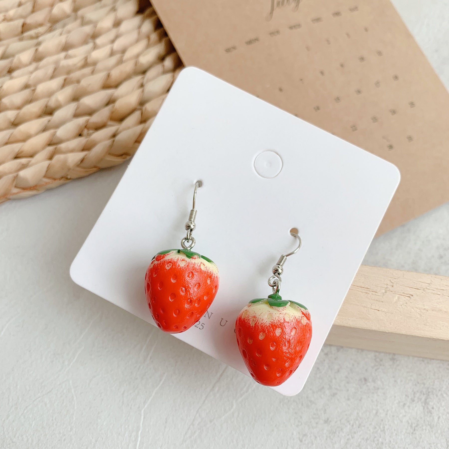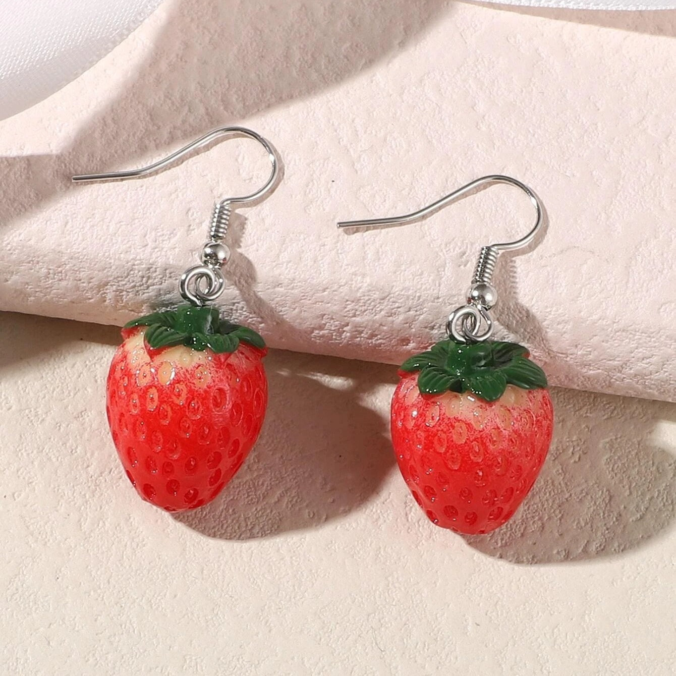 Adorable strawberry design resin earrings for a fun and stylish look.