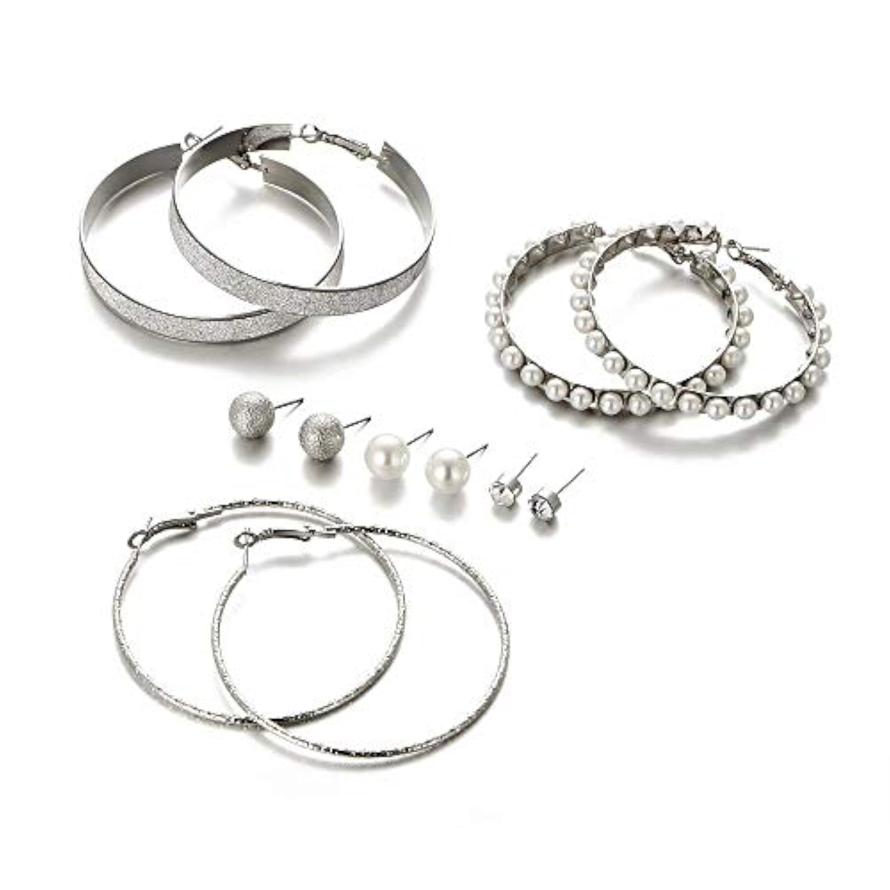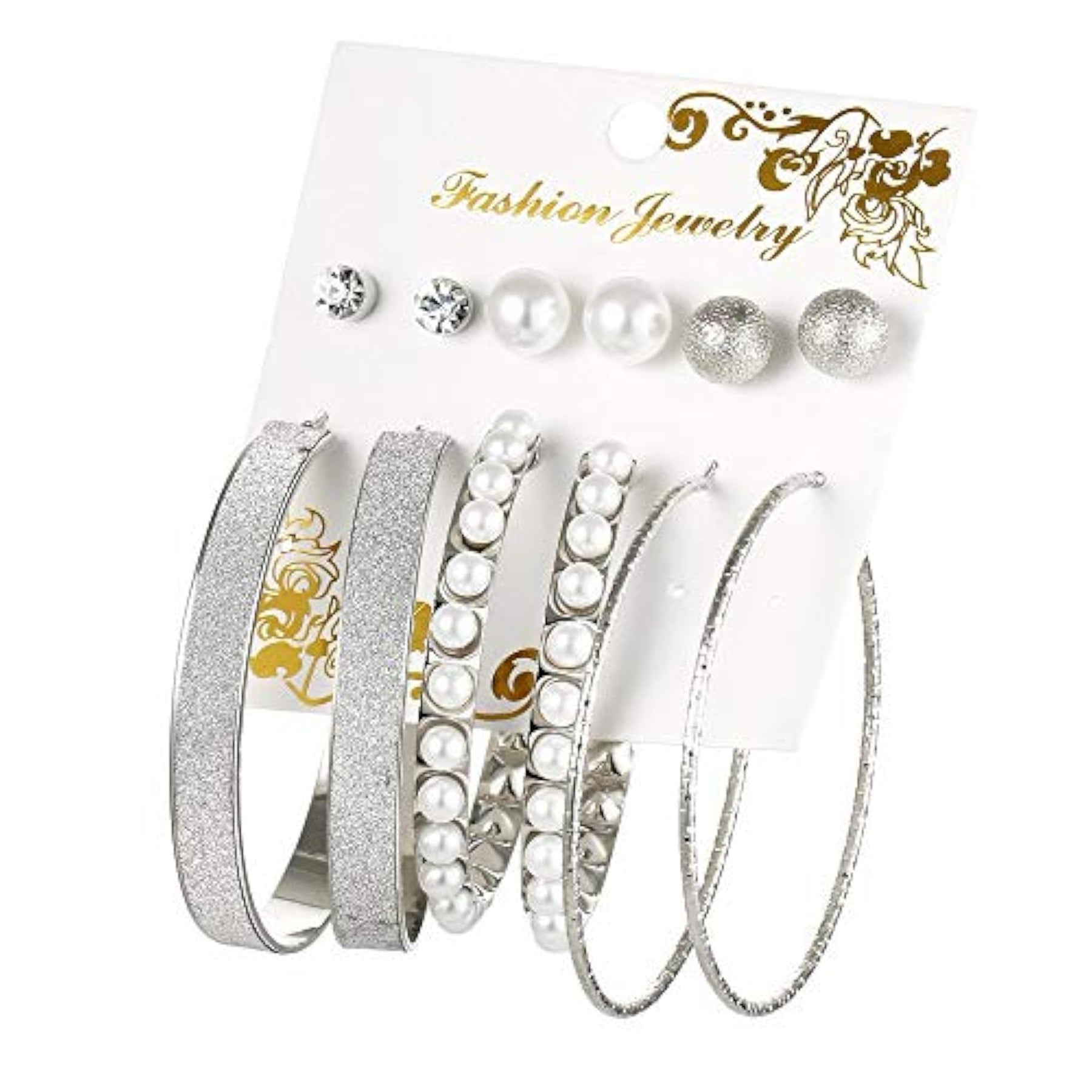 Elevate your style with this set of 6 pairs of trendy metal earrings. Perfect for everyday wear or special occasions.