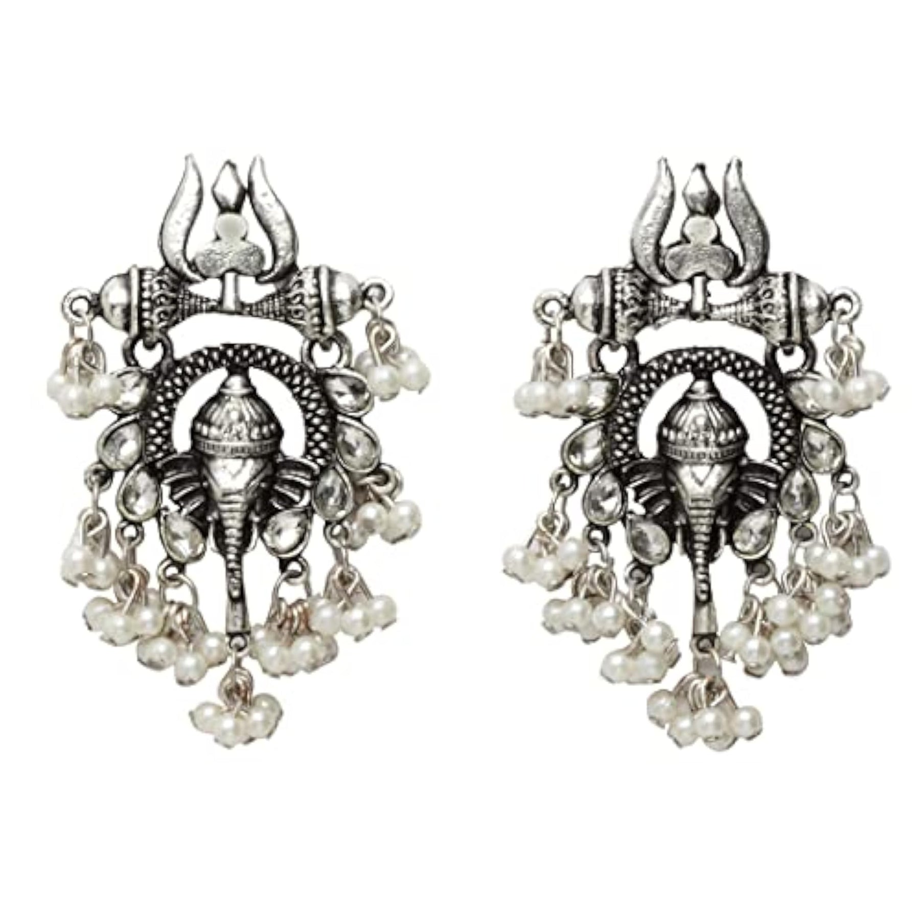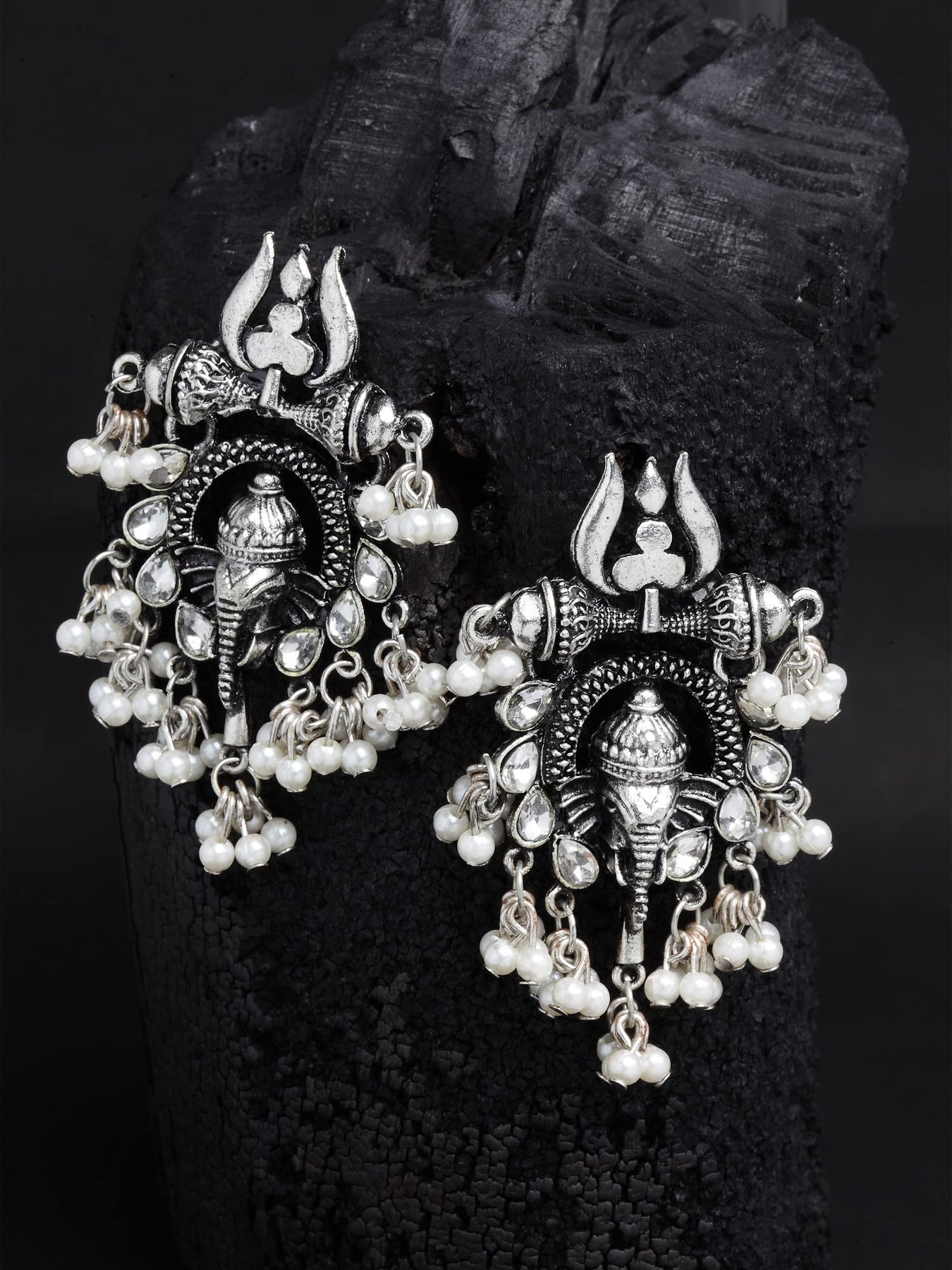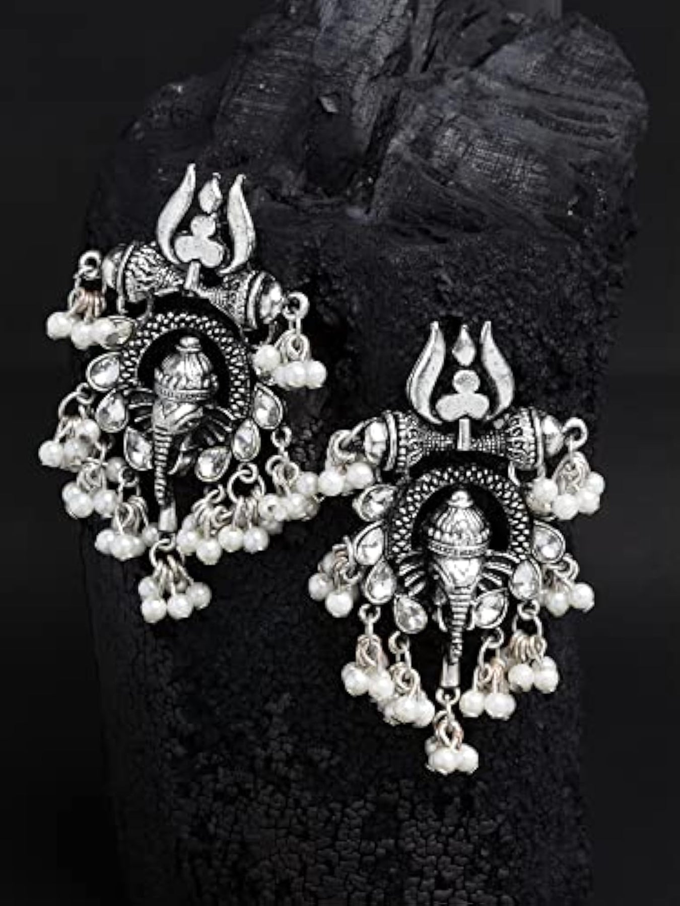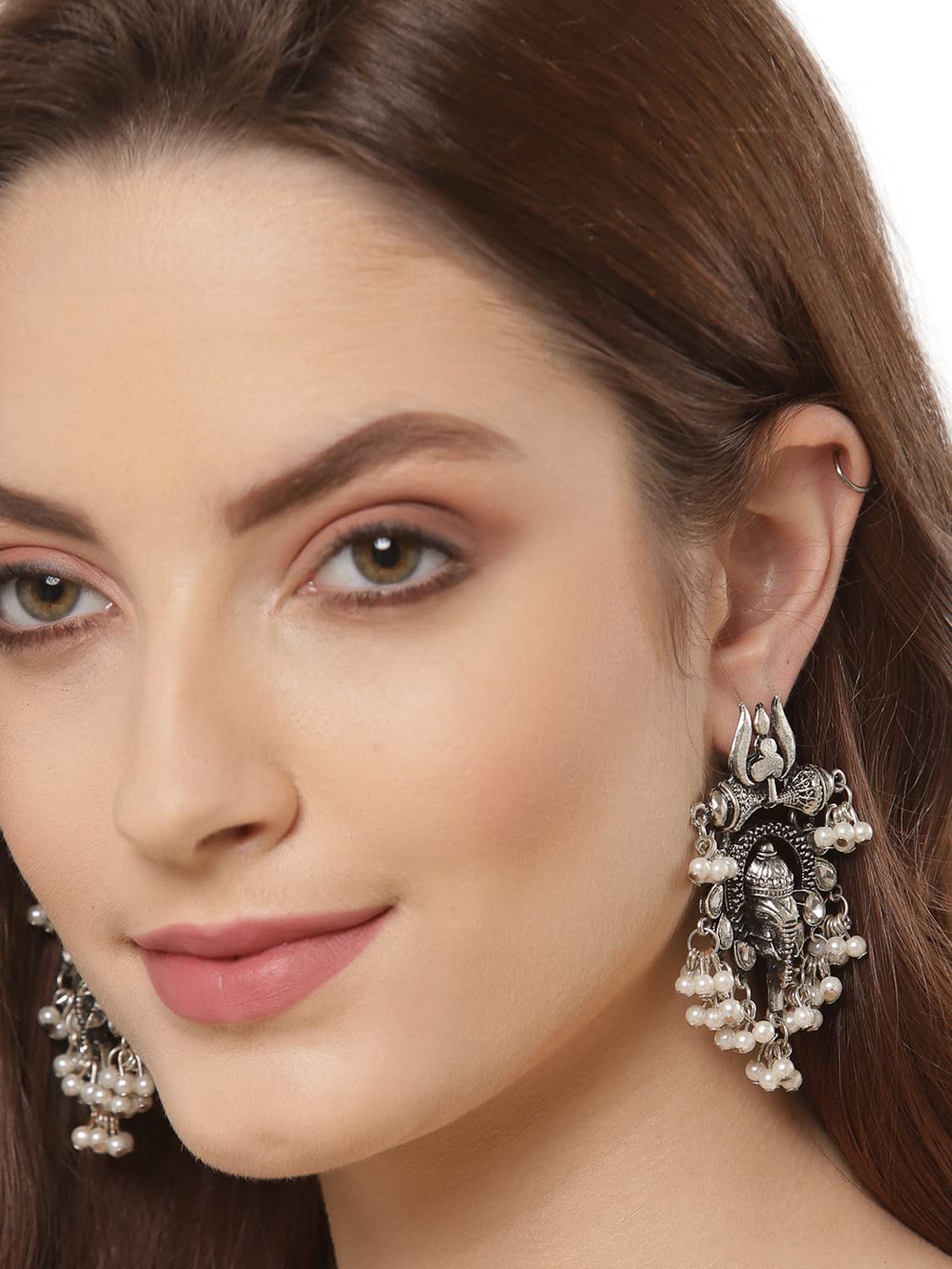 • Handcrafted Oxidised Ganesh Earrings for Women