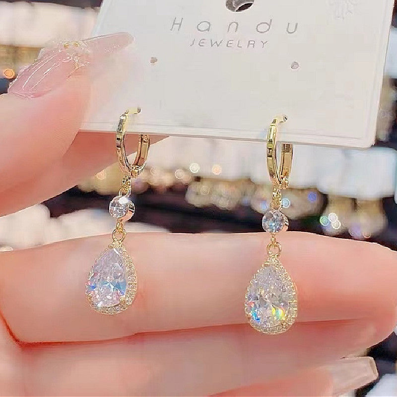 Teardrop Zircon Dangle Earrings Alloy Jewelry Gift