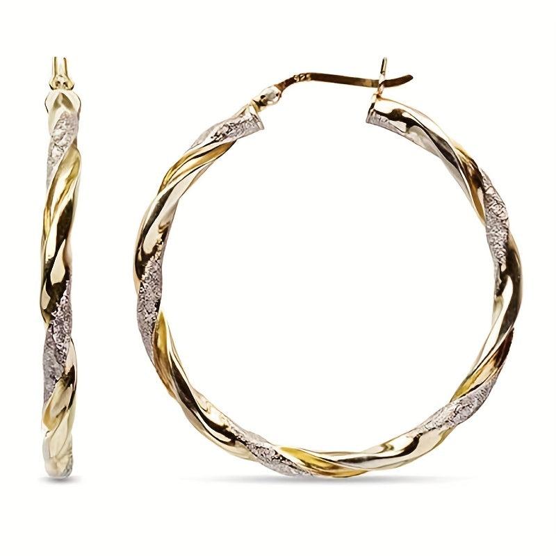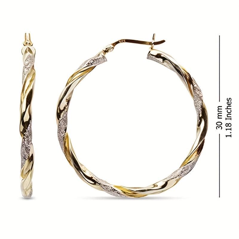 Add a touch of glamour with these sexy twist golden hoop earrings. Made of copper with 18K plating, these earrings are a perfect gift for females.