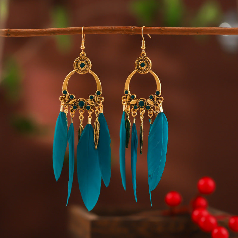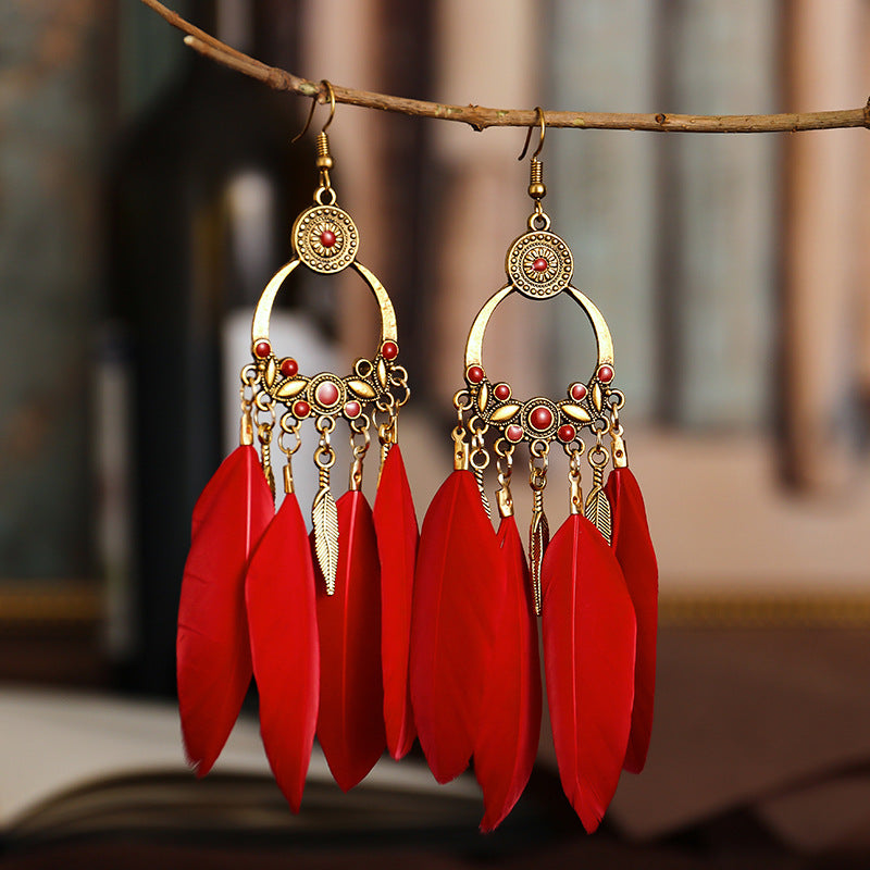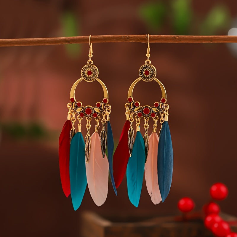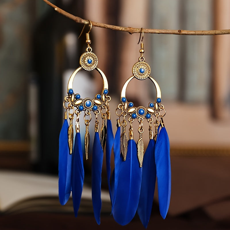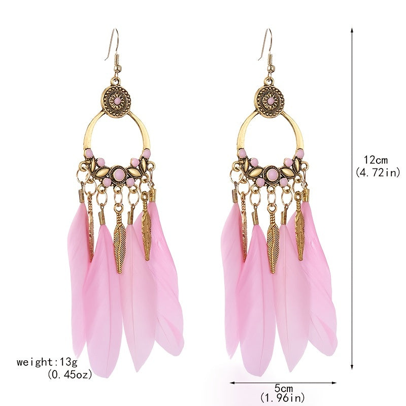 Add a pop of color to your outfit with these vibrant feather tassel earrings. These bohemian-inspired faux feather earrings are perfect for women and girls who love to make a bold statement with their accessories.