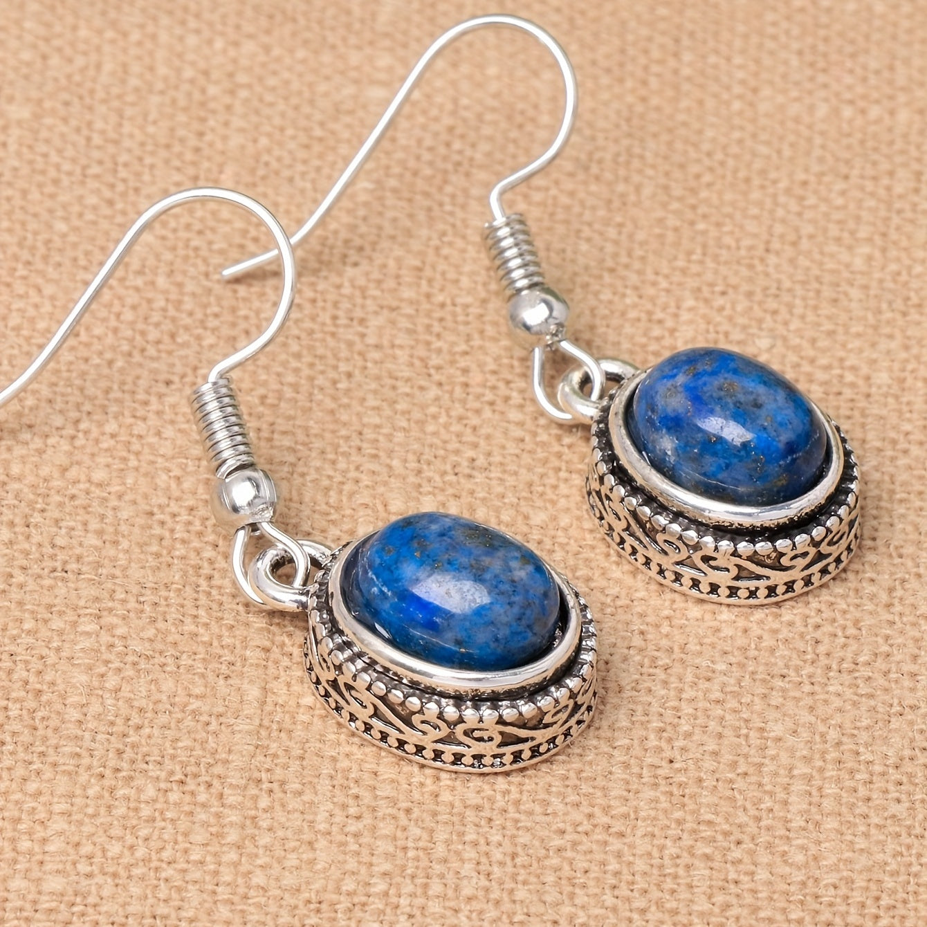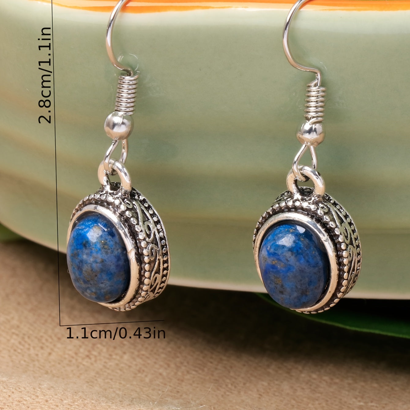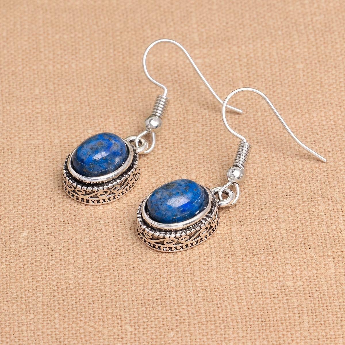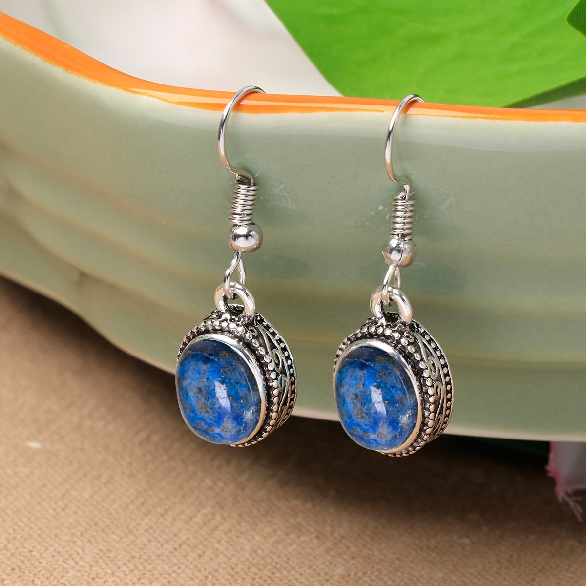 Add a touch of elegance to your look with these delicate lapis lazuli dangle earrings. Perfect for women who appreciate vintage style jewelry.