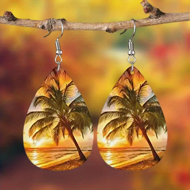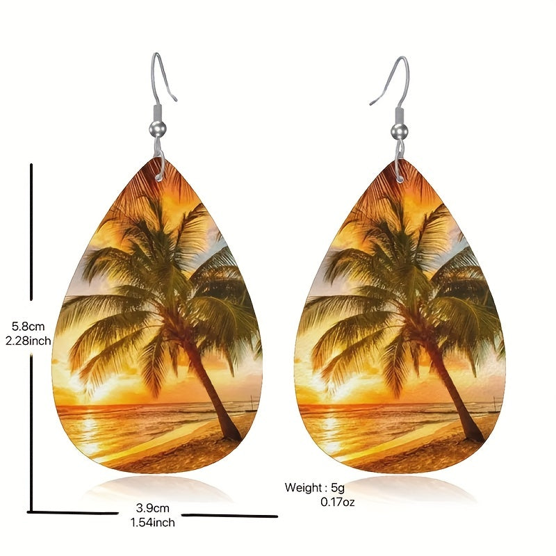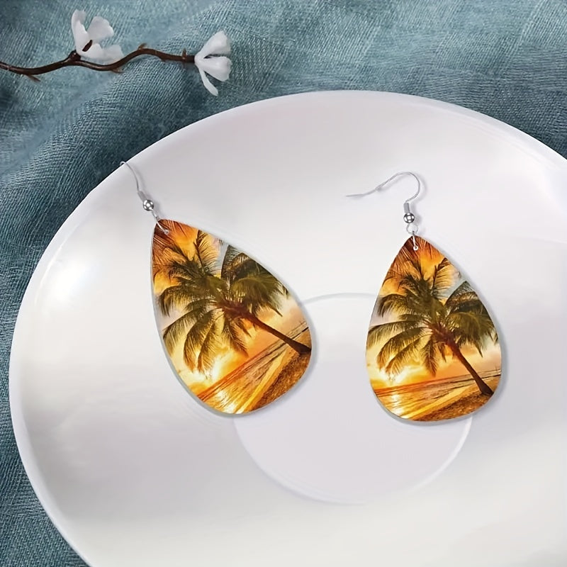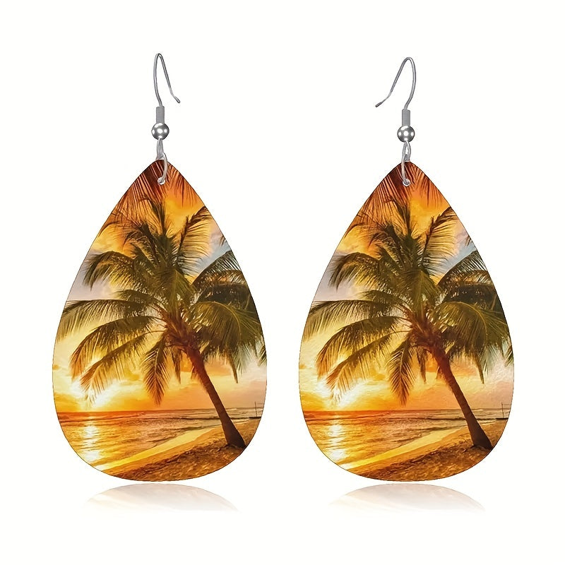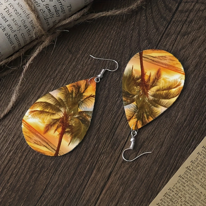 Add a tropical touch to your outfit with these yellow coconut tree teardrop earrings made of PU leather. Perfect for parties and events.