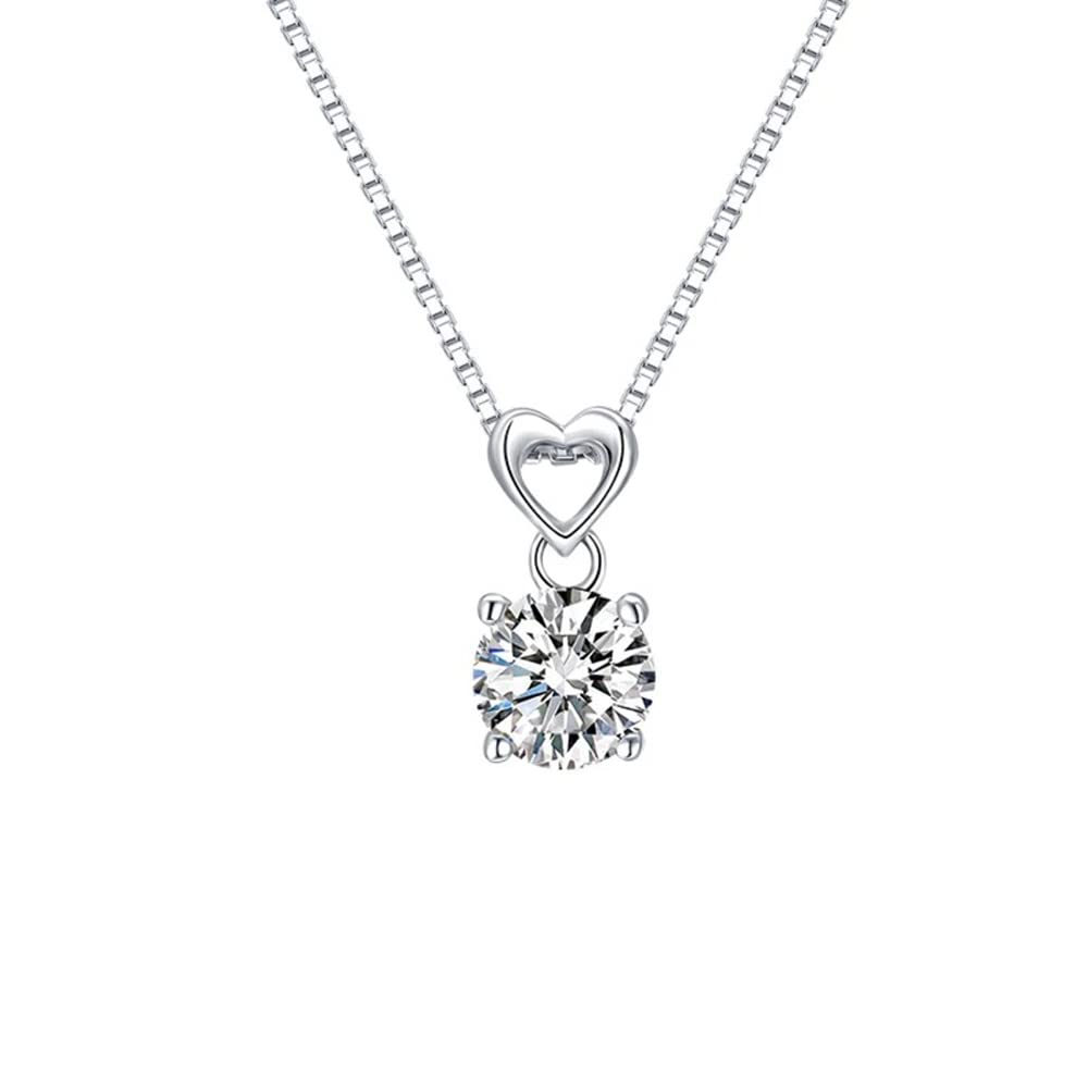 Elegant solitaire diamond pendant necklace set with platinum plating.