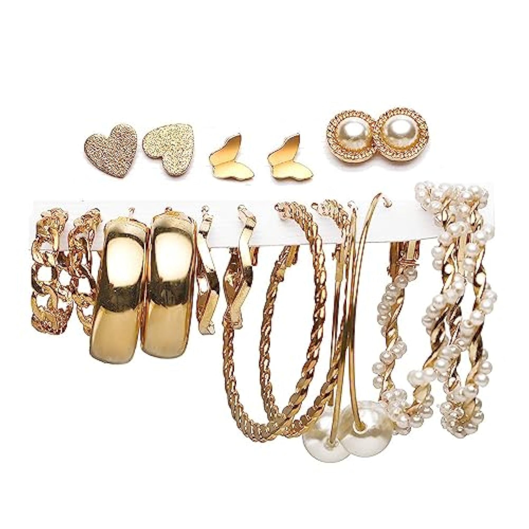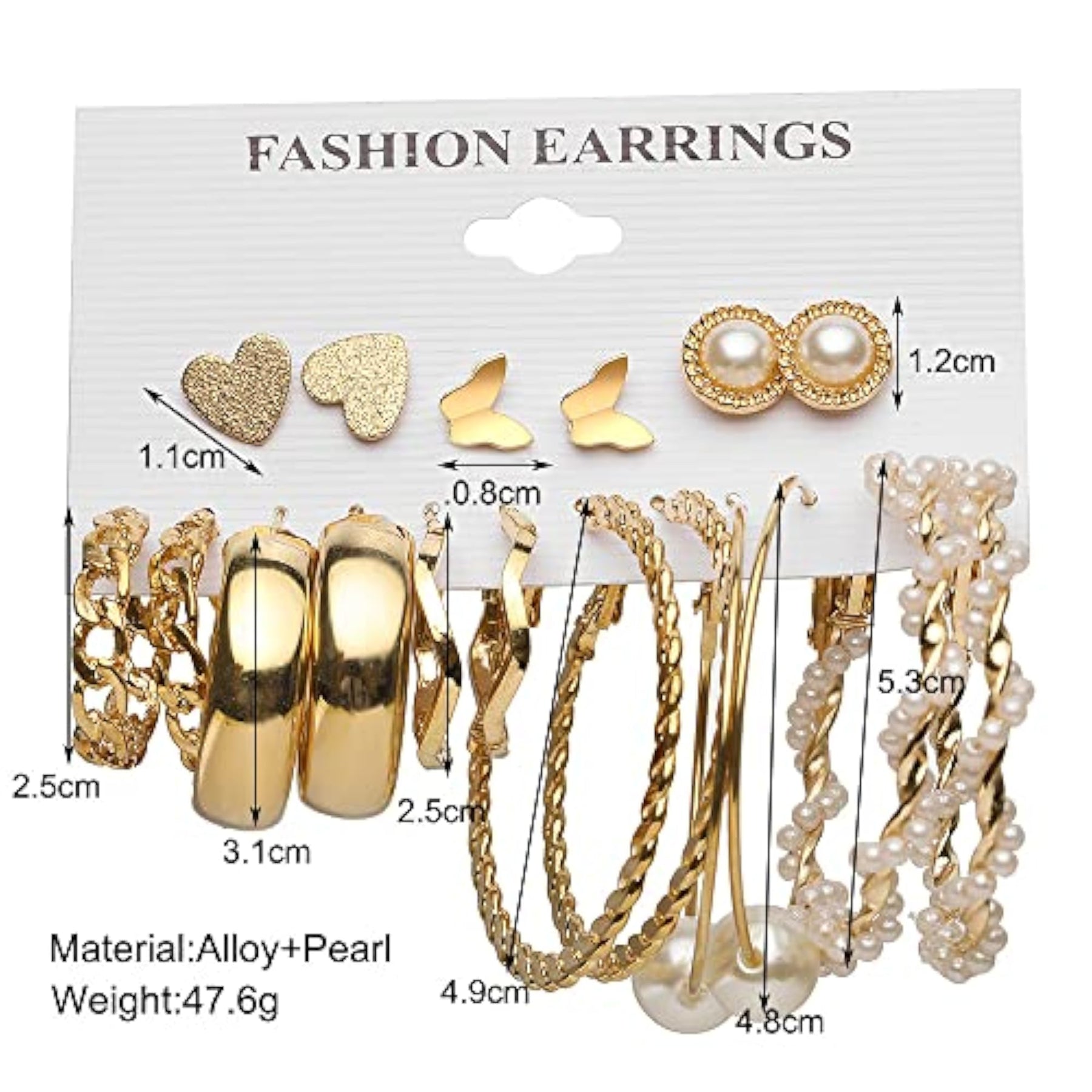 Get this stylish combo of 9 pairs of gold earrings for women to elevate your accessory game.