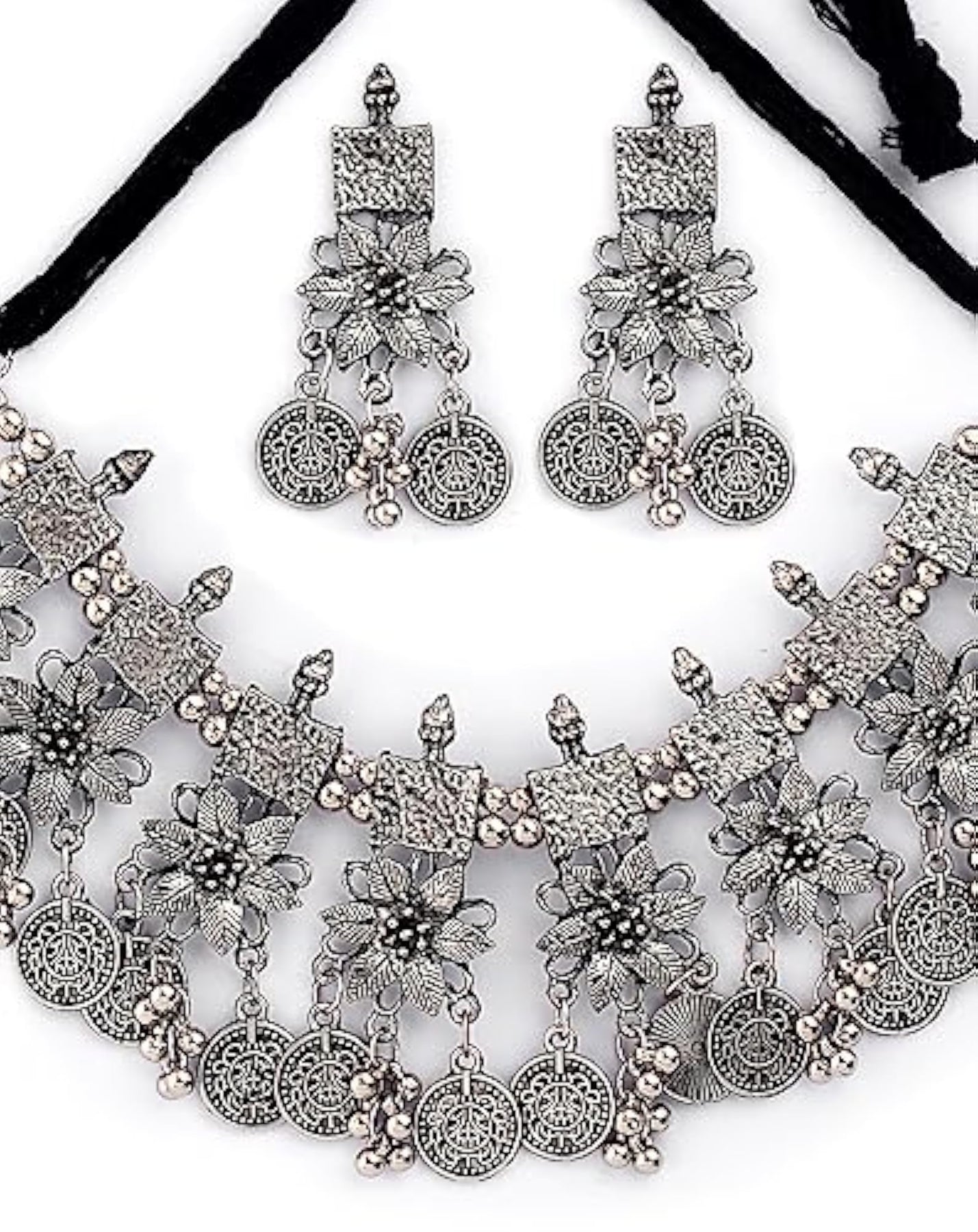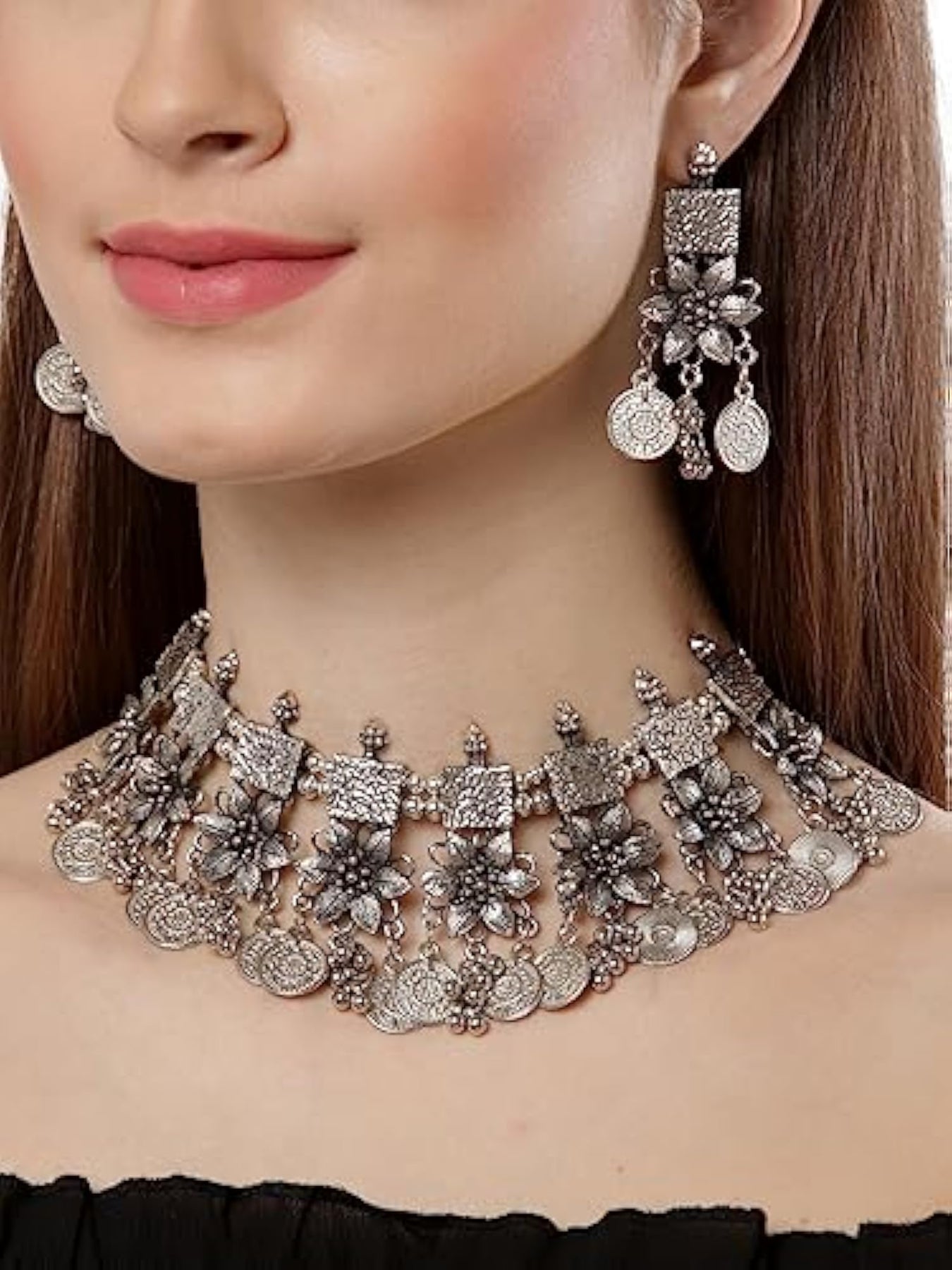 Elevate your style with this fancy oxidized choker necklace set. Perfect for traditional and trendy outfits.