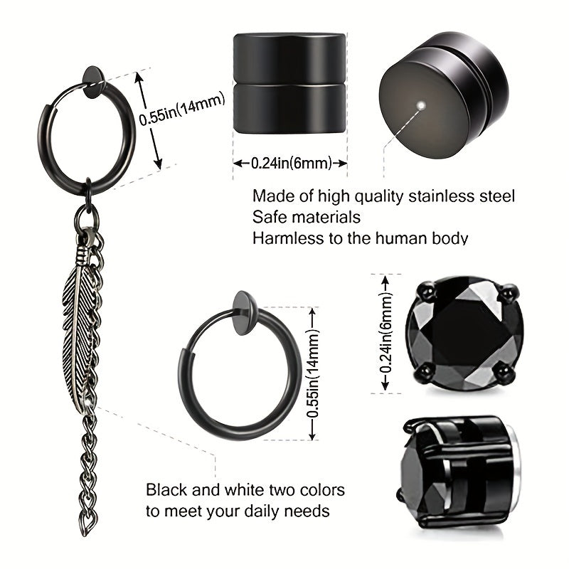 Unisex non-piercing ear clips set for men and women. Made of stainless steel, comfortable to wear. Suitable for various occasions and outfits.