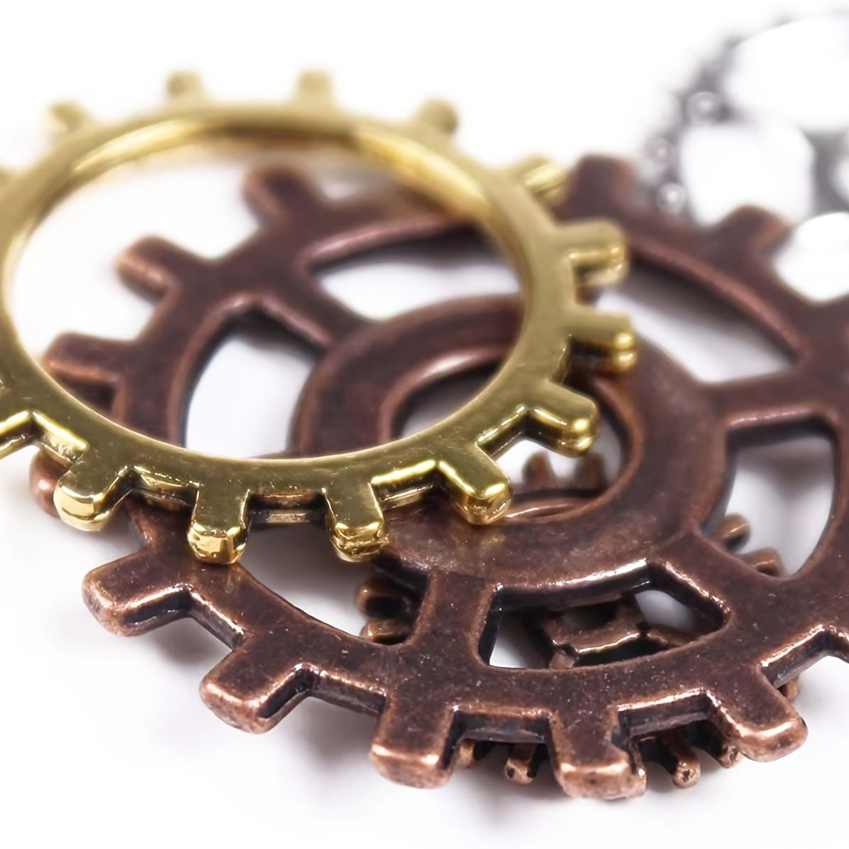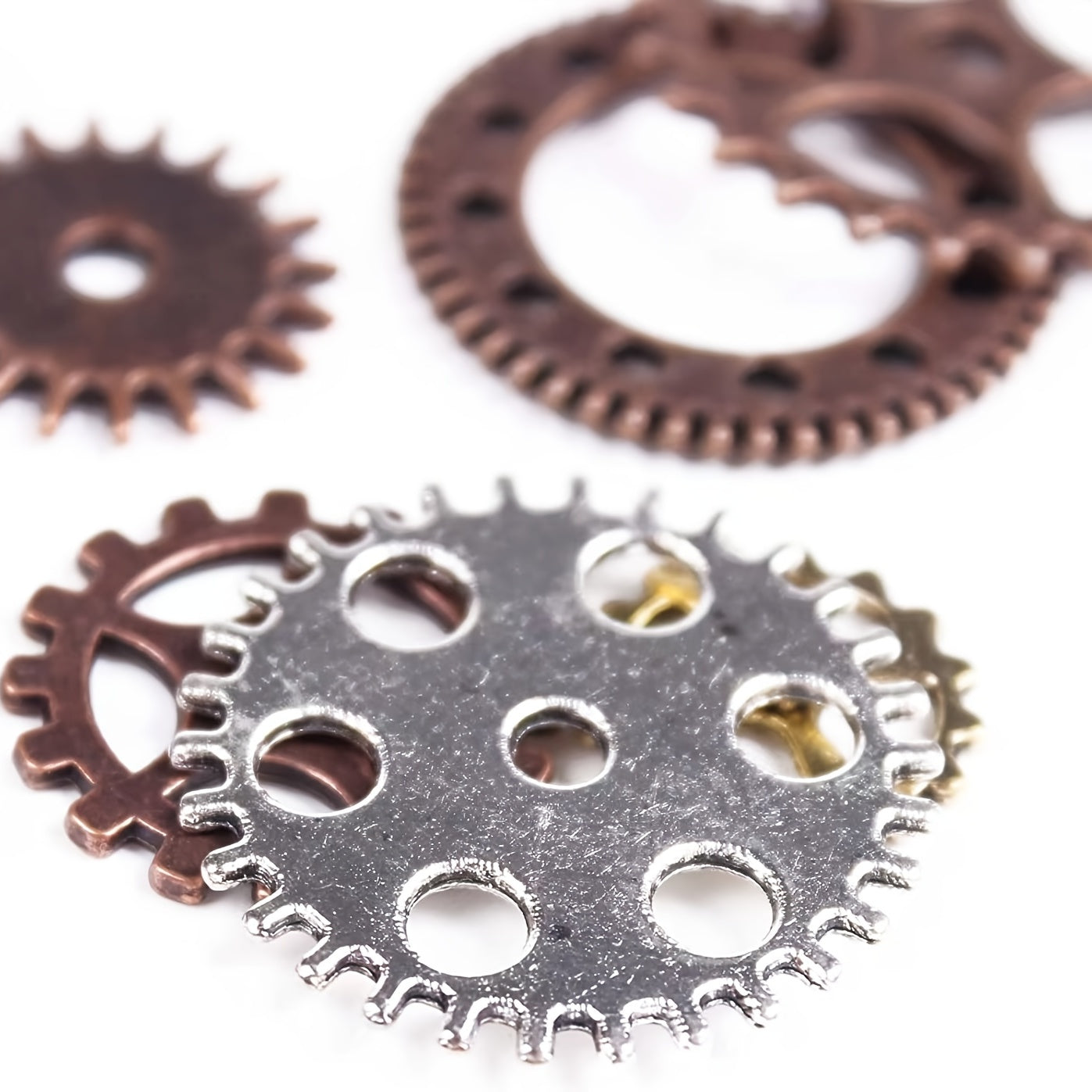 Get creative with this 100g pack of assorted antique metal steam punk gear pendants for your jewelry making projects. These gears can add a vintage touch to your crafts.