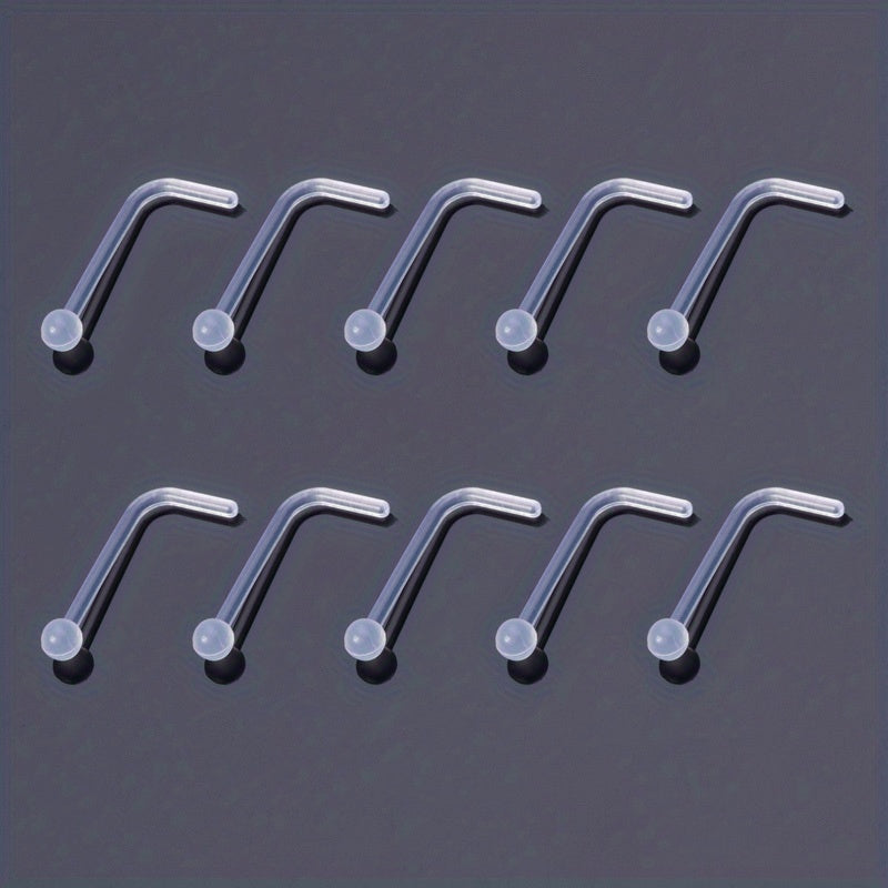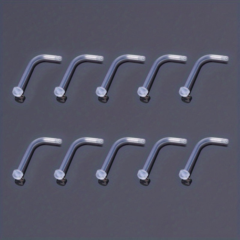 10pcs Clear Acrylic Nose Stud Earrings Transparent Invisible Nostril Ring