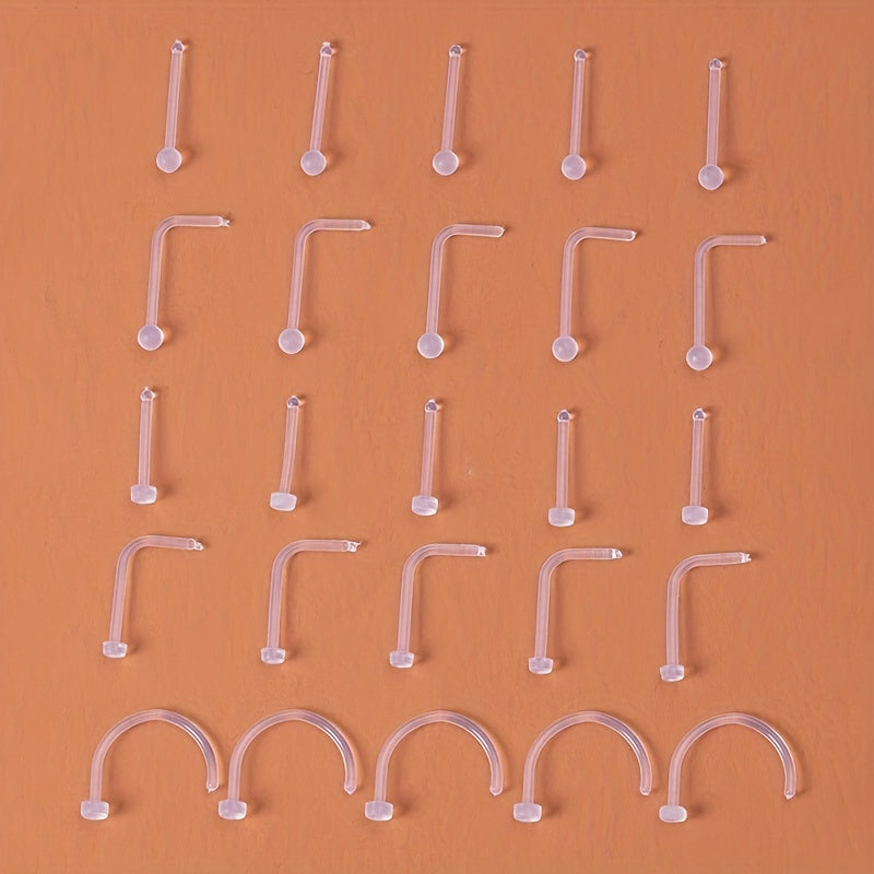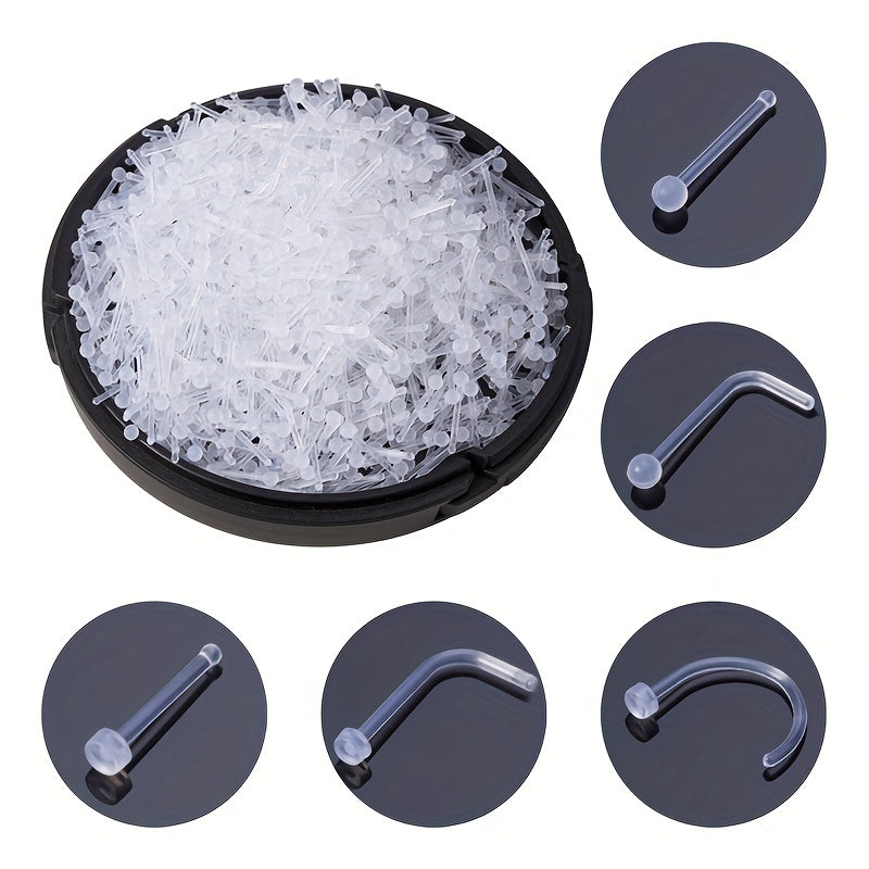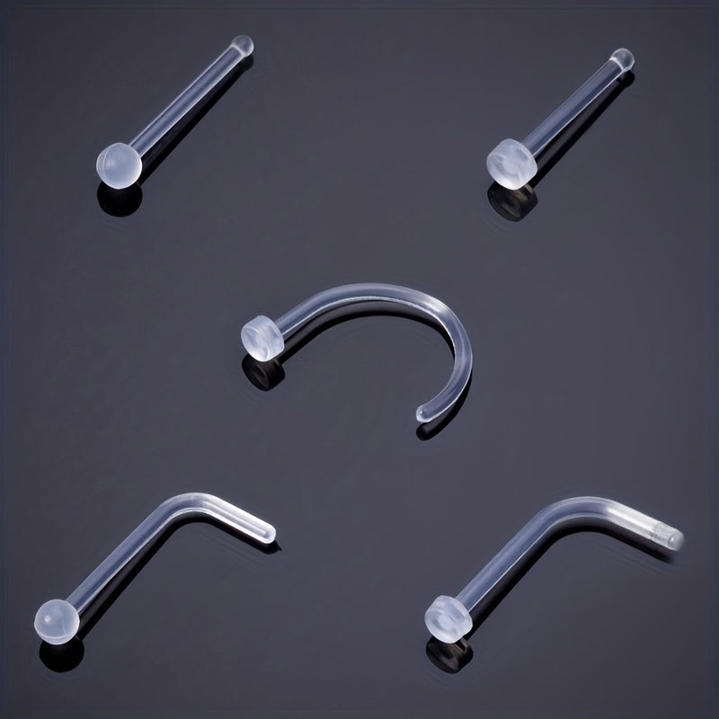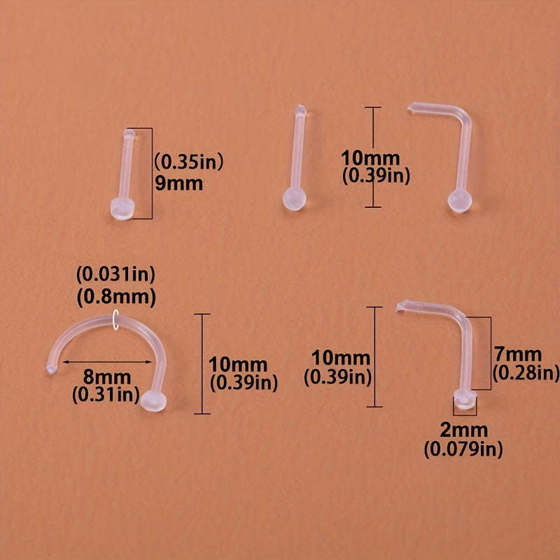 These nose stud earrings are made of clear acrylic material, providing a transparent and invisible look. Ideal for nostril piercings and ear piercings, great as body jewelry.