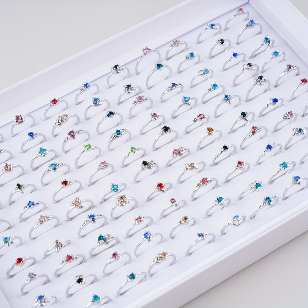 10Pcs Colorful Rhinestone Inlaid Thin Rings for Anniversary Party