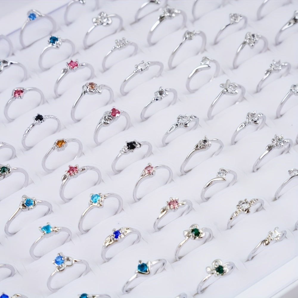 Add a touch of sparkle to your look with these thin rings featuring colorful rhinestone inlays. Perfect for parties and anniversaries.