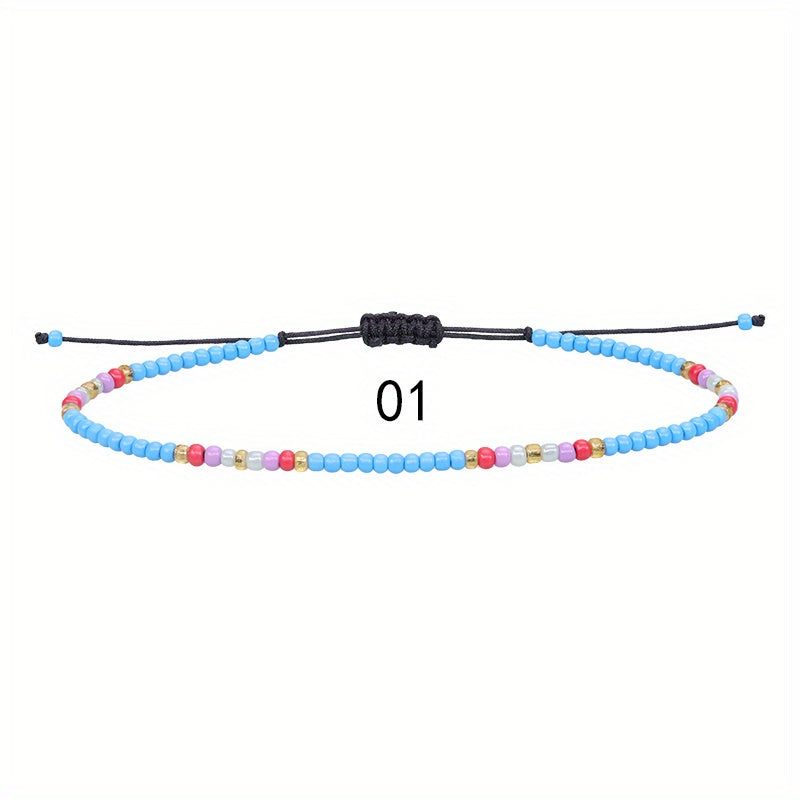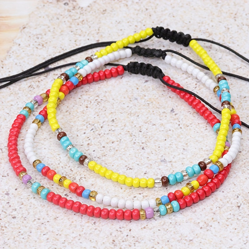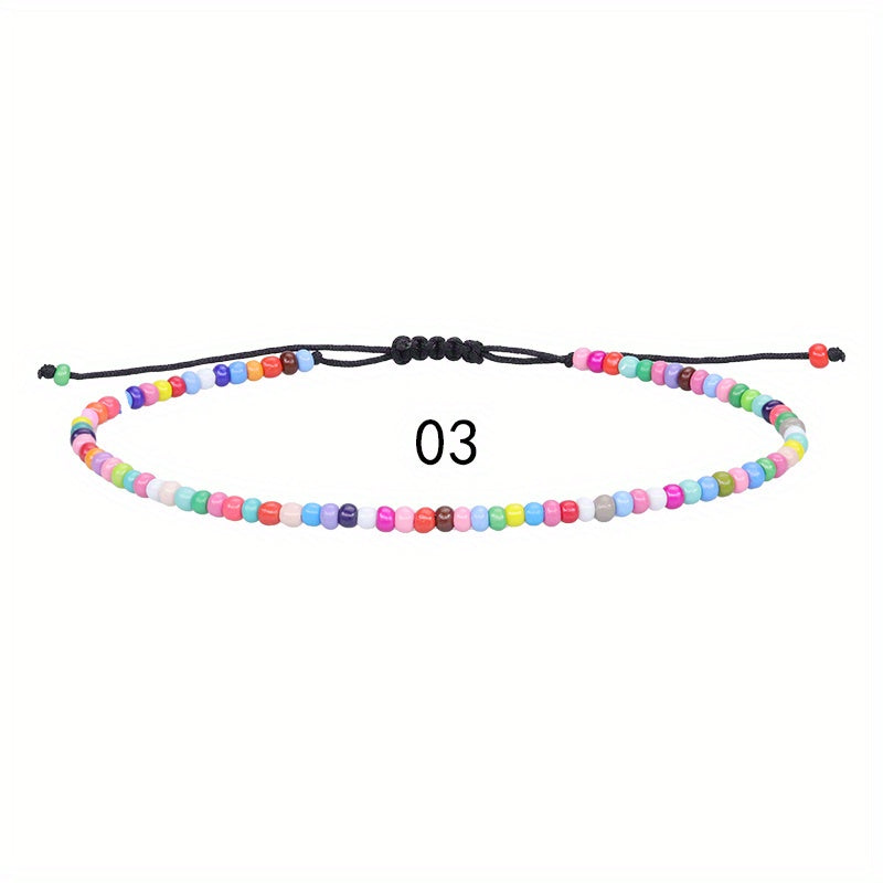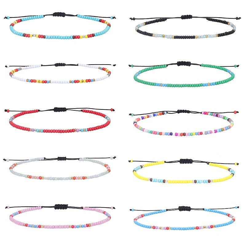 10pcs Colorful Rice Beads Anklet Set Boho Style Bracelet for Women