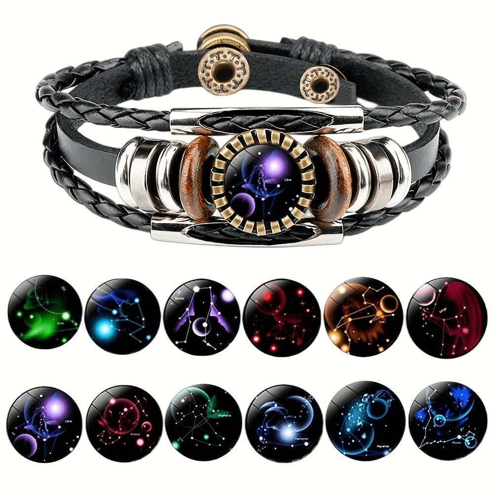 Explore the cosmic vibes with these 12 constellation-themed beaded leather bracelets. Each bracelet represents a zodiac sign.