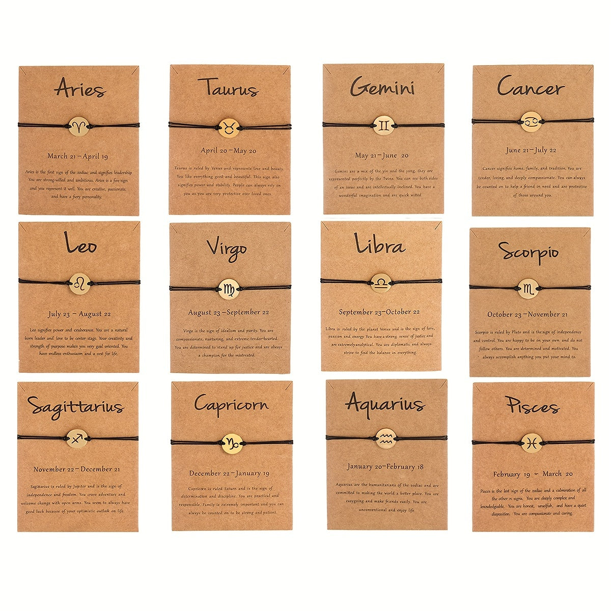 12 Constellation Charm Rope Bracelet Hand Jewelry For Women Girls