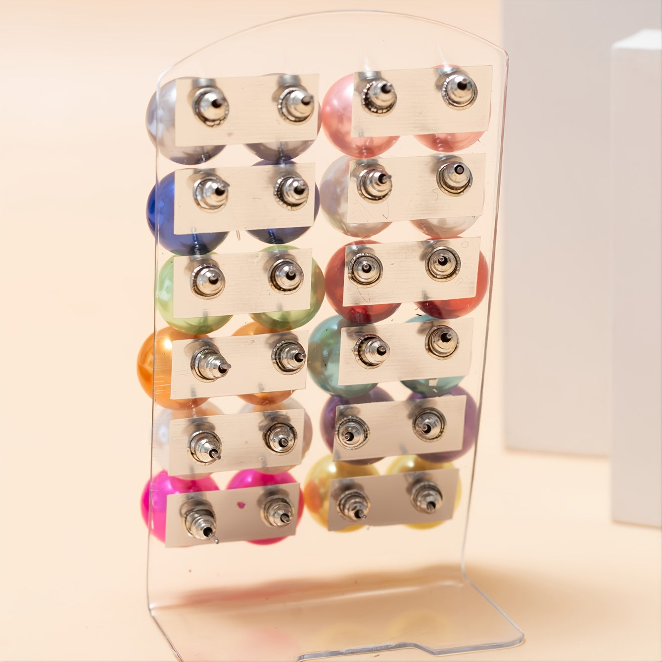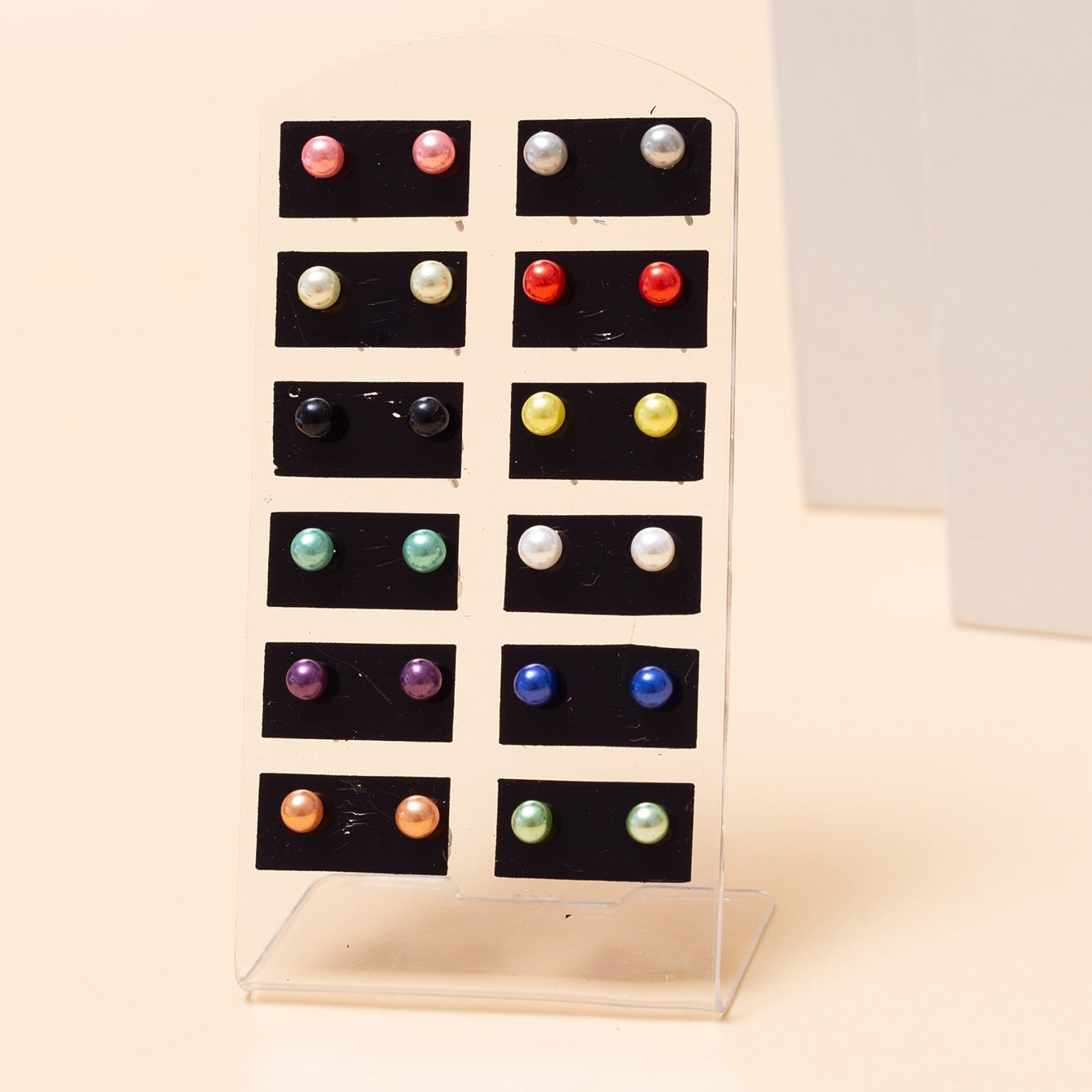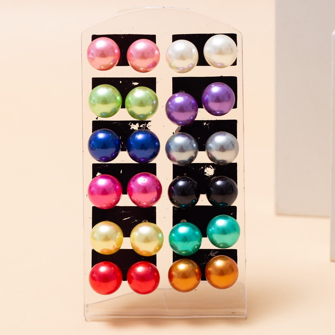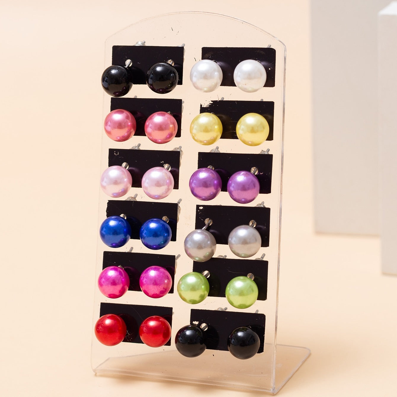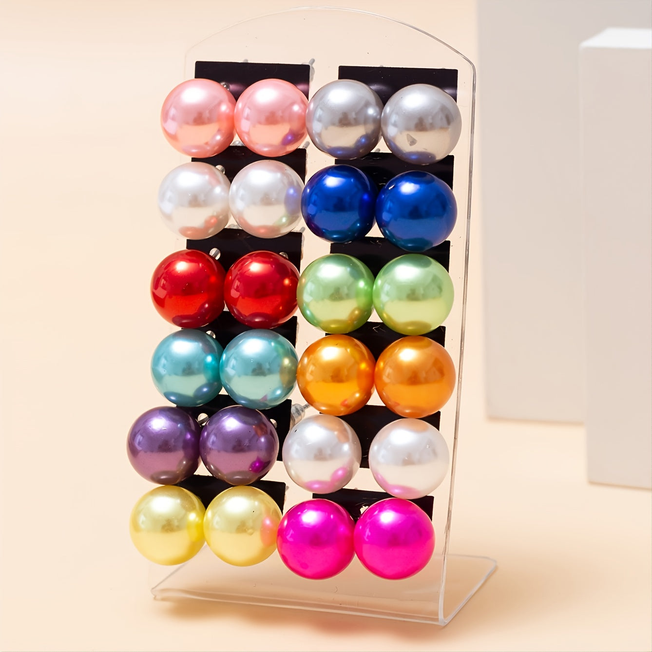• 12 pairs of colorful pearl round ball stud earrings