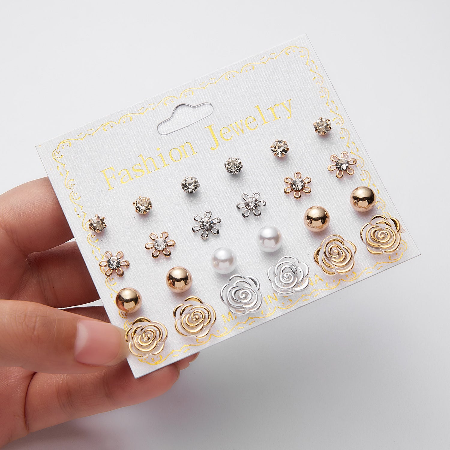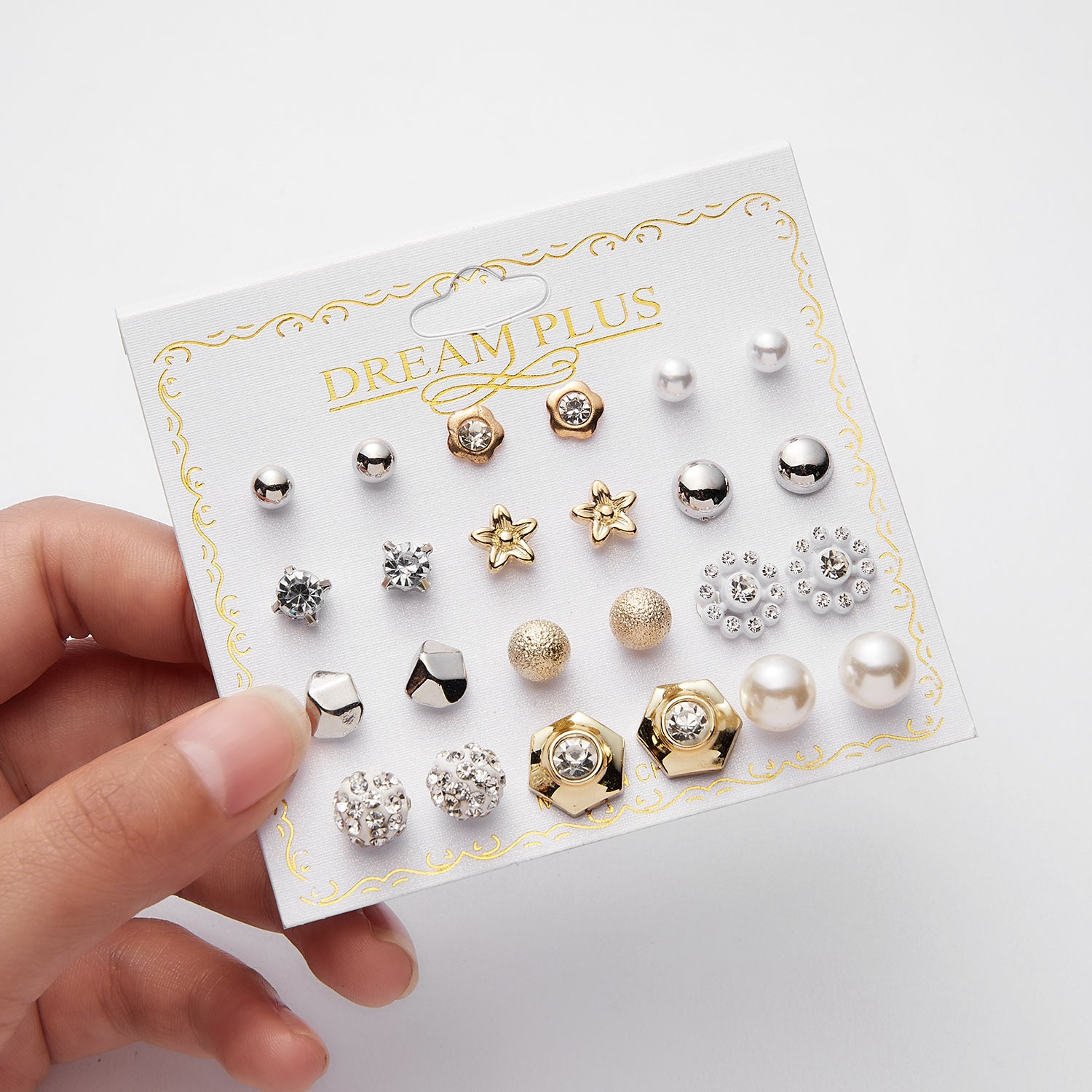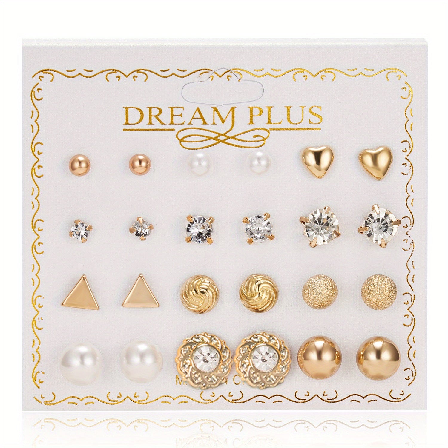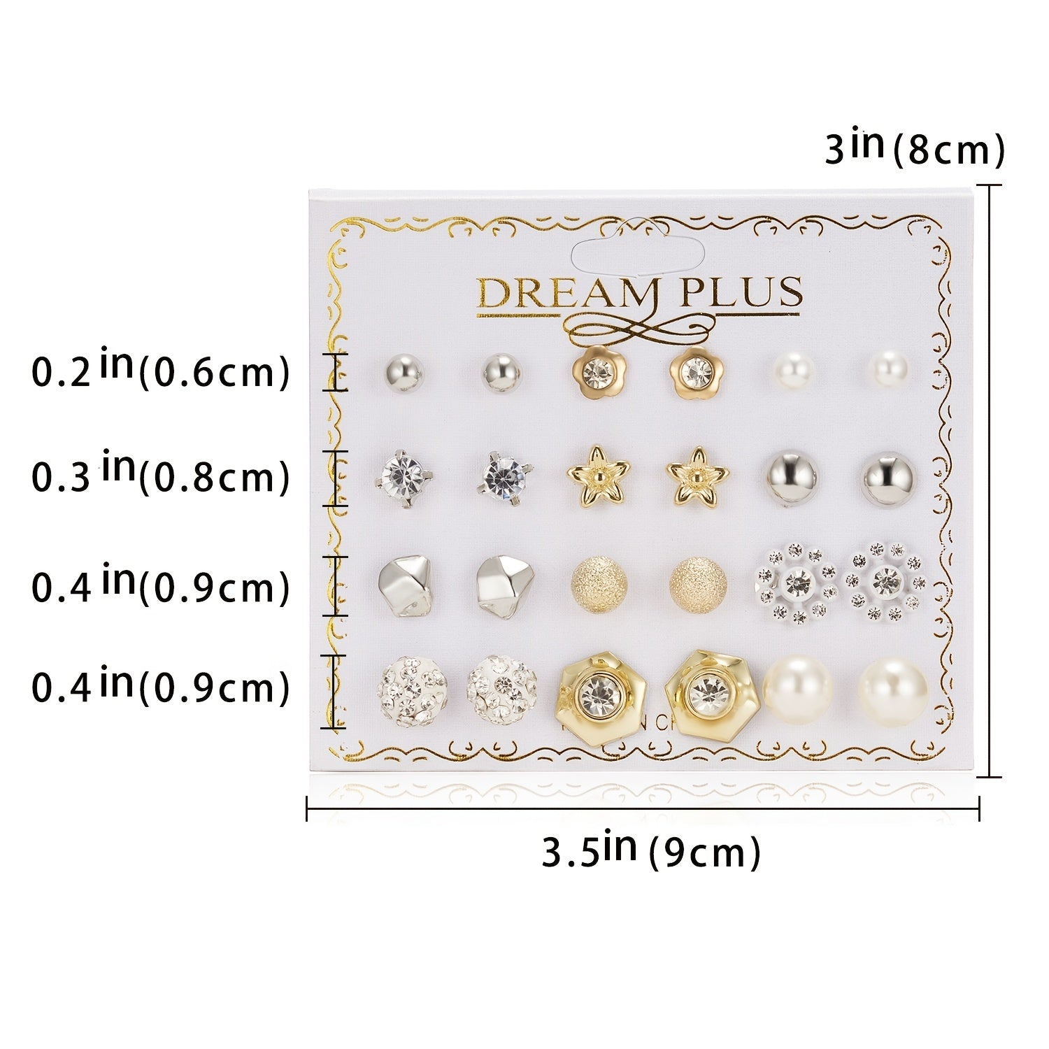 Elegant set of 12 pairs of stud earrings featuring ball zircon and faux pearl design. Made with high-quality alloy, suitable for daily wear and as a thoughtful gift for women.