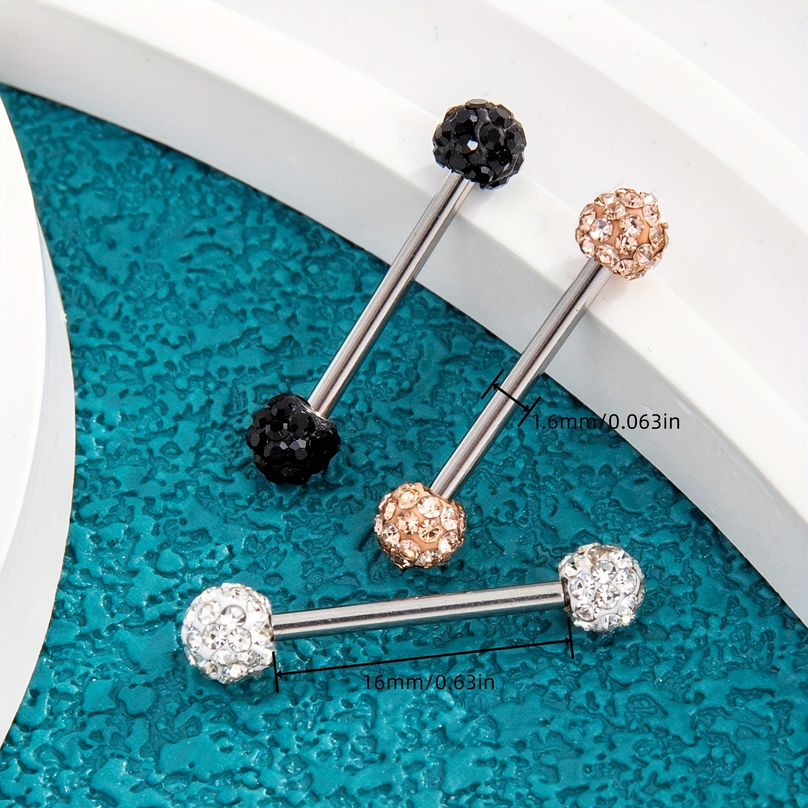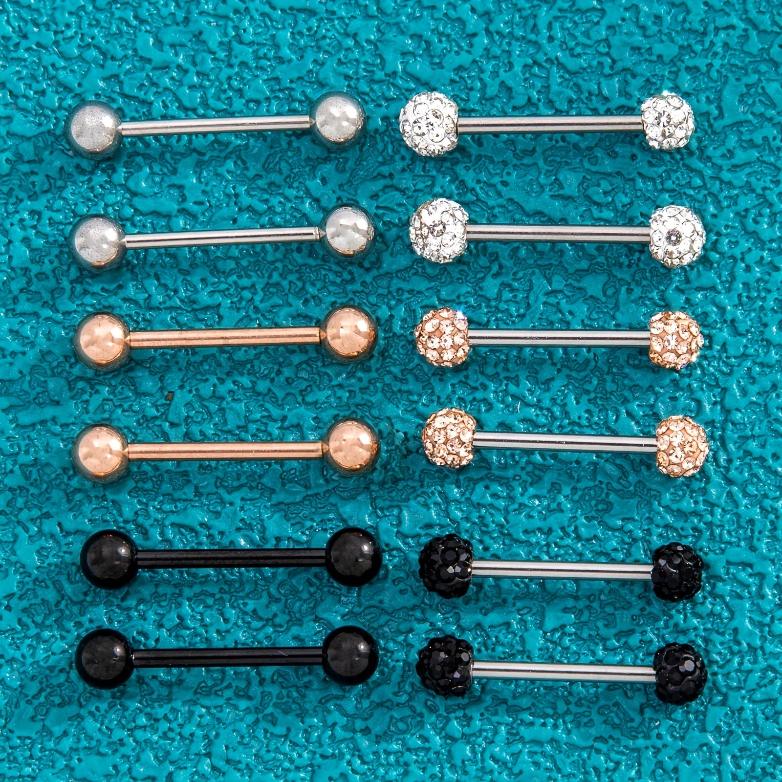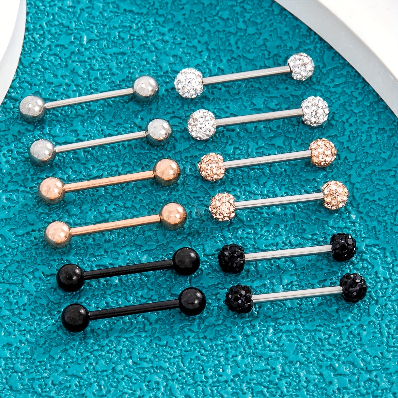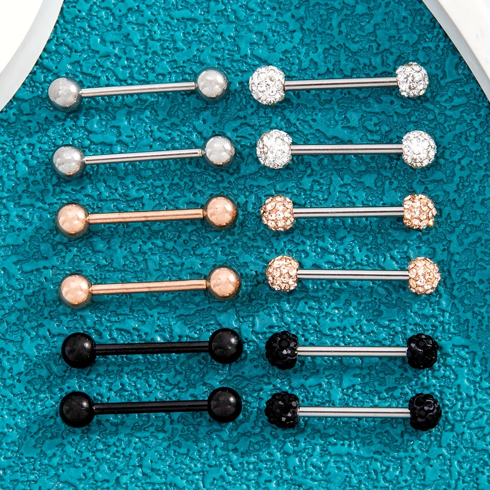 Get a Y2K style with this 12-piece tongue ring set that features inlaid rhinestones. Perfect for body jewelry lovers!