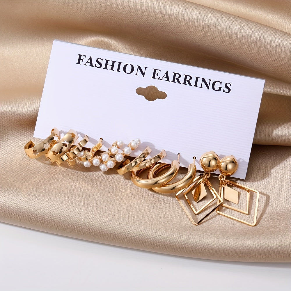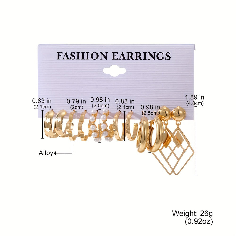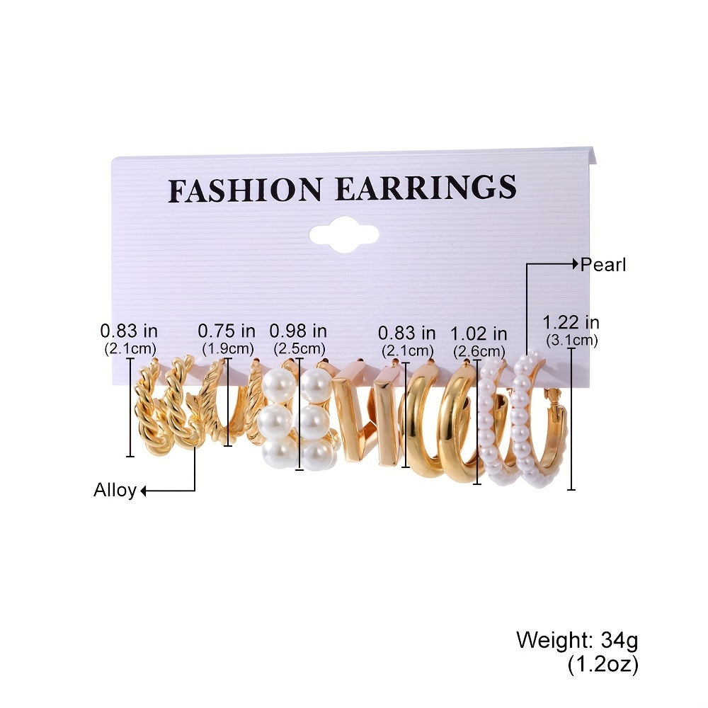 18 Pairs Golden Hoop Earrings Set With Faux Pearl Decor