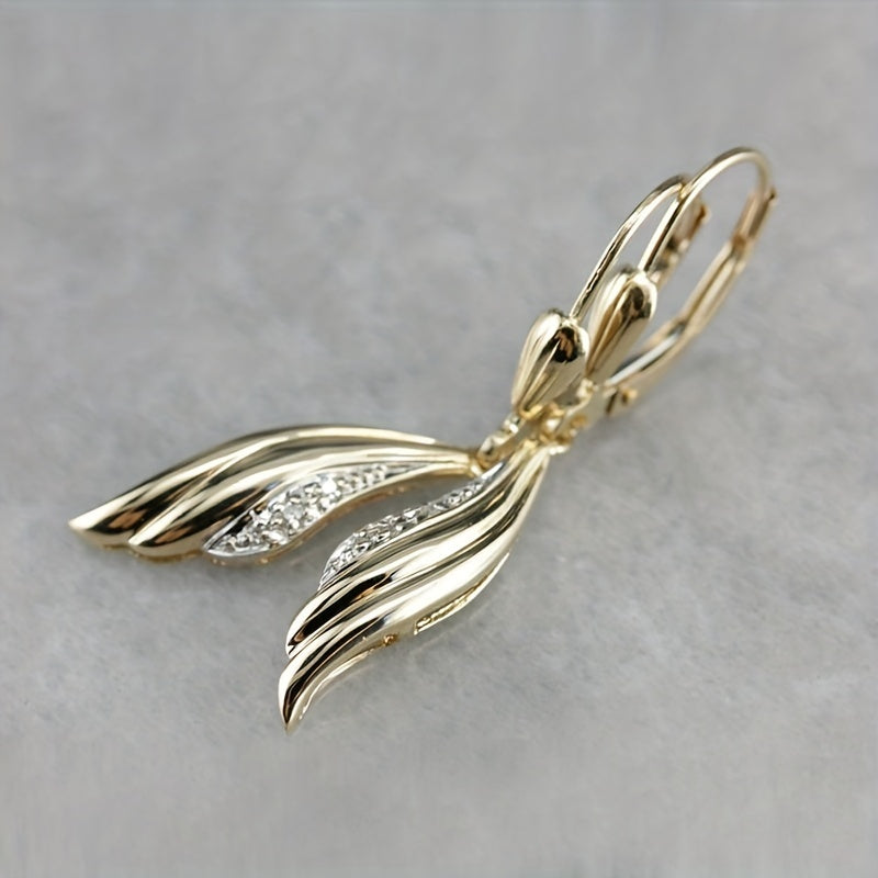 These stunning goldfish tail dangle earrings are perfect for weddings, parties, banquets, and engagements. Made with 18K gold plating, they add a touch of elegance to any outfit.
