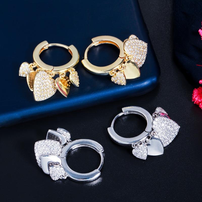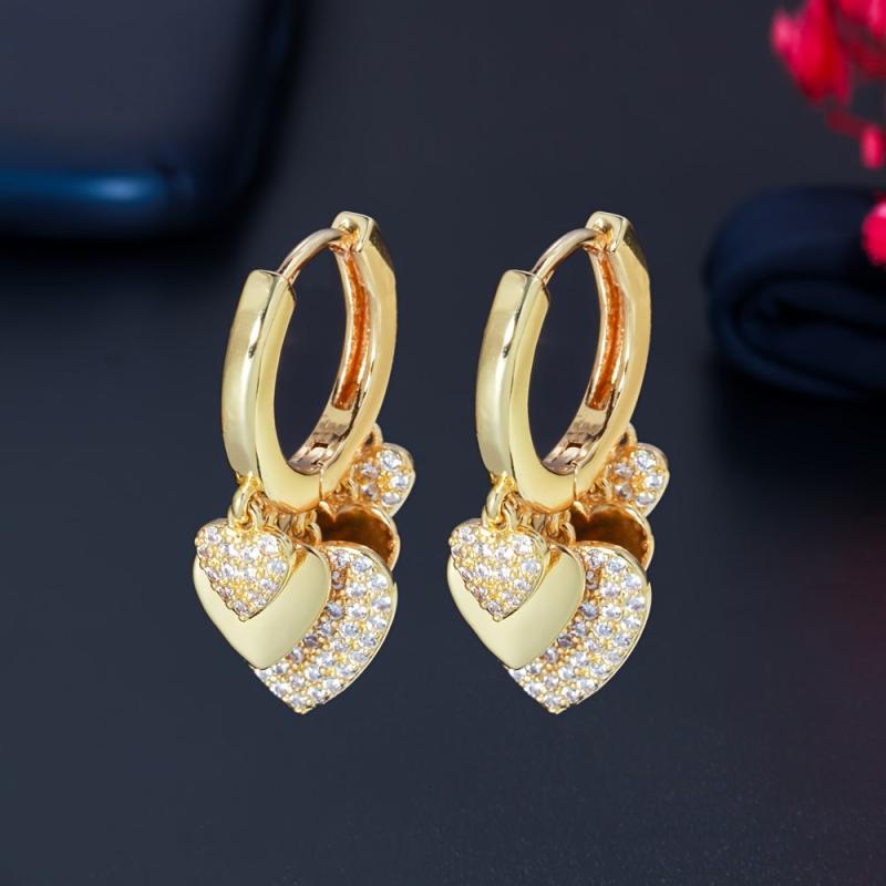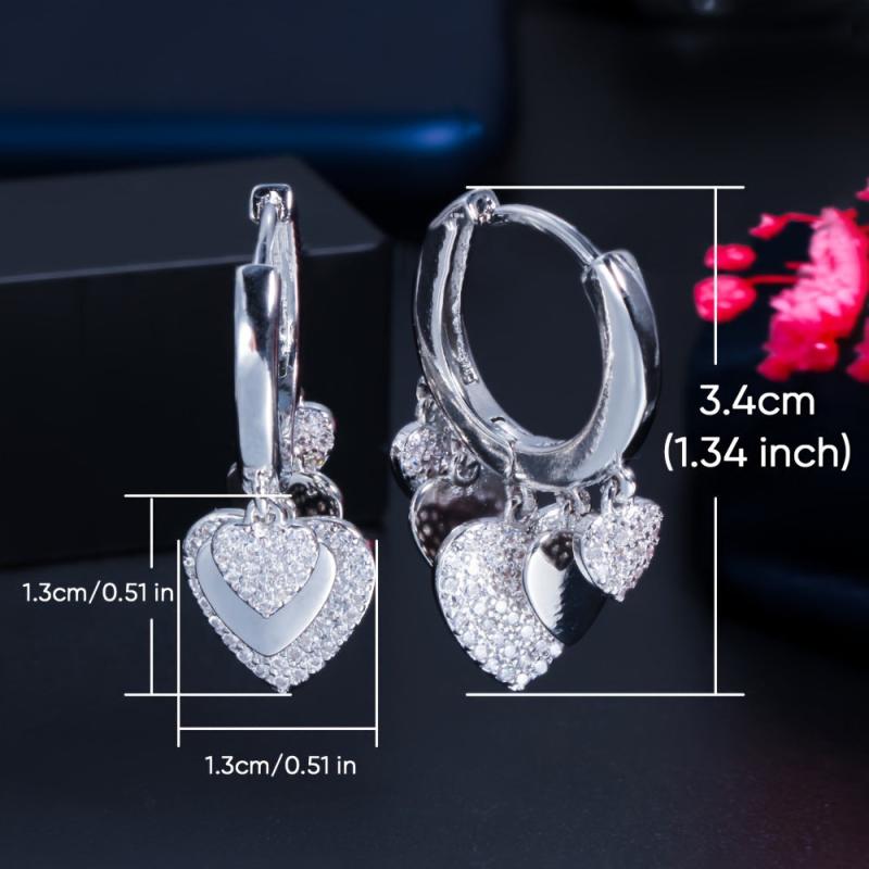 18K Heart Pendant Hoop Earrings with Zirconia, Gift for Her