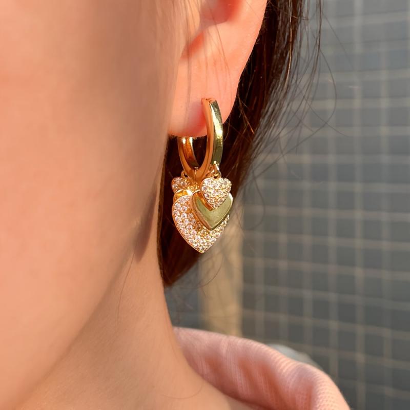 Stunning 18K gold plated hoop earrings featuring a heart-shaped pendant with sparkling zirconia. This elegant pair is a perfect gift for her on any occasion.